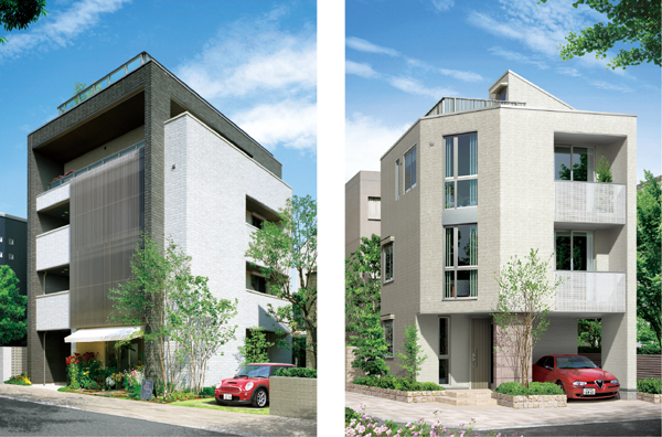 (写真右)設計対応力の高い「ビエナ」なら、不定型な敷地を最大限に有効活用しつつ瀟洒(しょうしゃ)な外観も実現