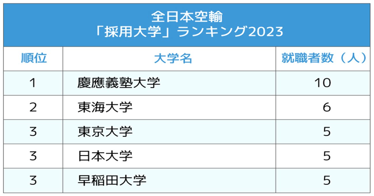 また、JALでは1位が慶應義塾大学、2位が早稲田大学で早慶が強さを見せた。