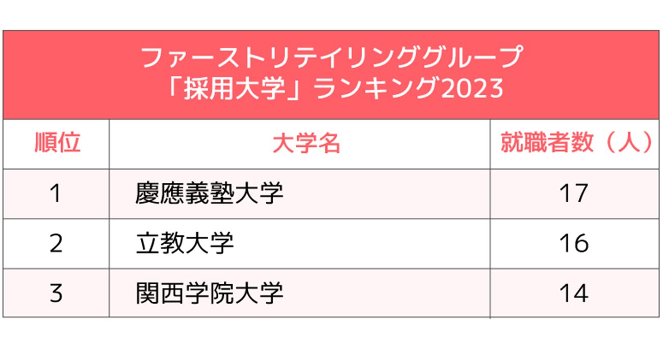 2022年の小売り大手2社の採用大学ランキングを見ると、1位はファーストリテイリンググループが慶應義塾大学、ニトリが関西学院大学だった。