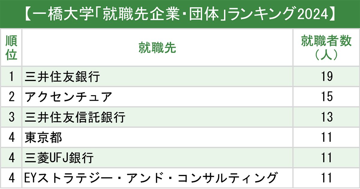 2023年の一橋大学、東京工業大学の「就職先企業・団体」ランキングでは、一橋大は、楽天グループと大和証券が同順位で1位、EYストラテジー・アンド・コンサルティングが3位、明治安田生命保険と東京都が同順位で4位だった。大和証券が22年の19位から1位に急浮上したように、証券会社の人気が高まっていた。