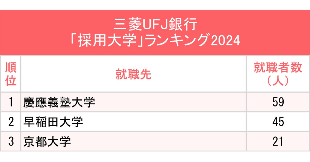 就職率が過去最高レベルに達している就活市場。「売り手市場」の中、各企業はどの大学から採用をしているのか。業界別・企業別に2024年「採用大学」ランキングを作成した。今回は、三菱UFJ銀行、みずほフィナンシャルグループ、三井住友銀行の3メガバンクのランキングをお届けする。(文/ダイヤモンド・ライフ編集部、データ提供/大学通信)