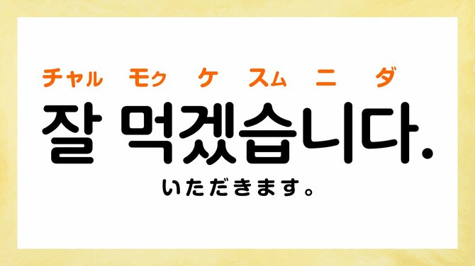 「チャル(잘)」は「よく」、「モクケスムニダ(먹겠습니다.)」は「食べます」の丁寧な言い方で、直訳すると「よく食べます」という意味。