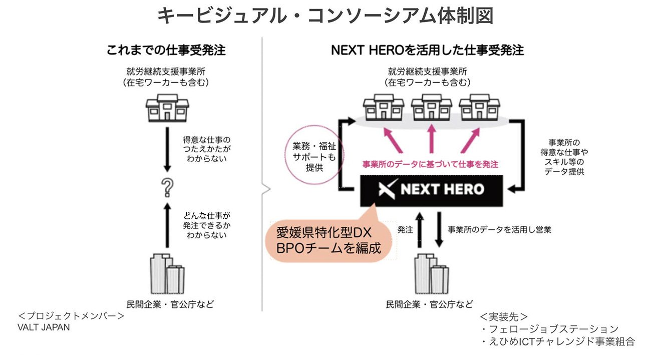 このデジタル実装プロジェクトを立ち上げたのは、東京に本社を構えるVALT JAPANだ。同社は、就労困難者に特化したBPO(Business Process Outsourcing)プラットフォーム「NEXT HERO」を運営し、デジタル業務を通じて新たな就労機会を全国規模で生み出している。
