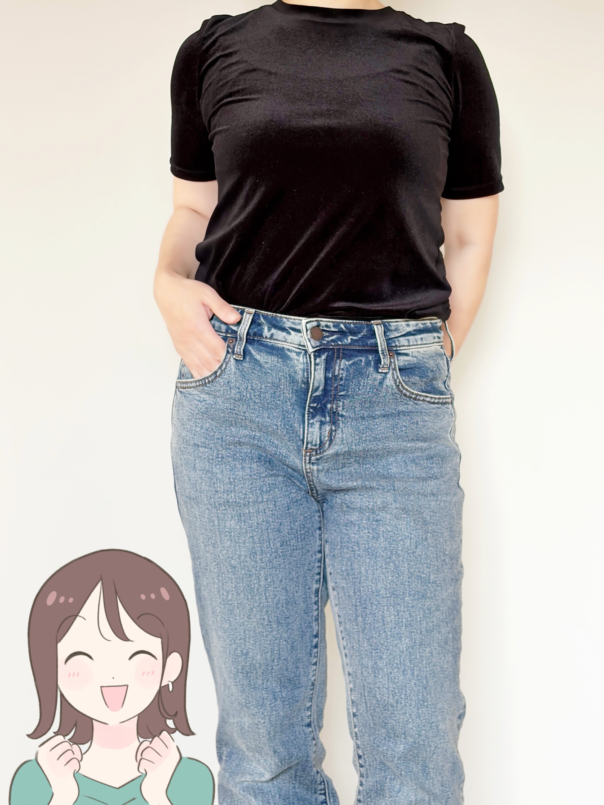 ジーンズなのに窮屈感がないし簡単にスタイルアップできて優秀です!幅広いトップスに合わせやすいので、一年中ガッツリ着回したいと思います。