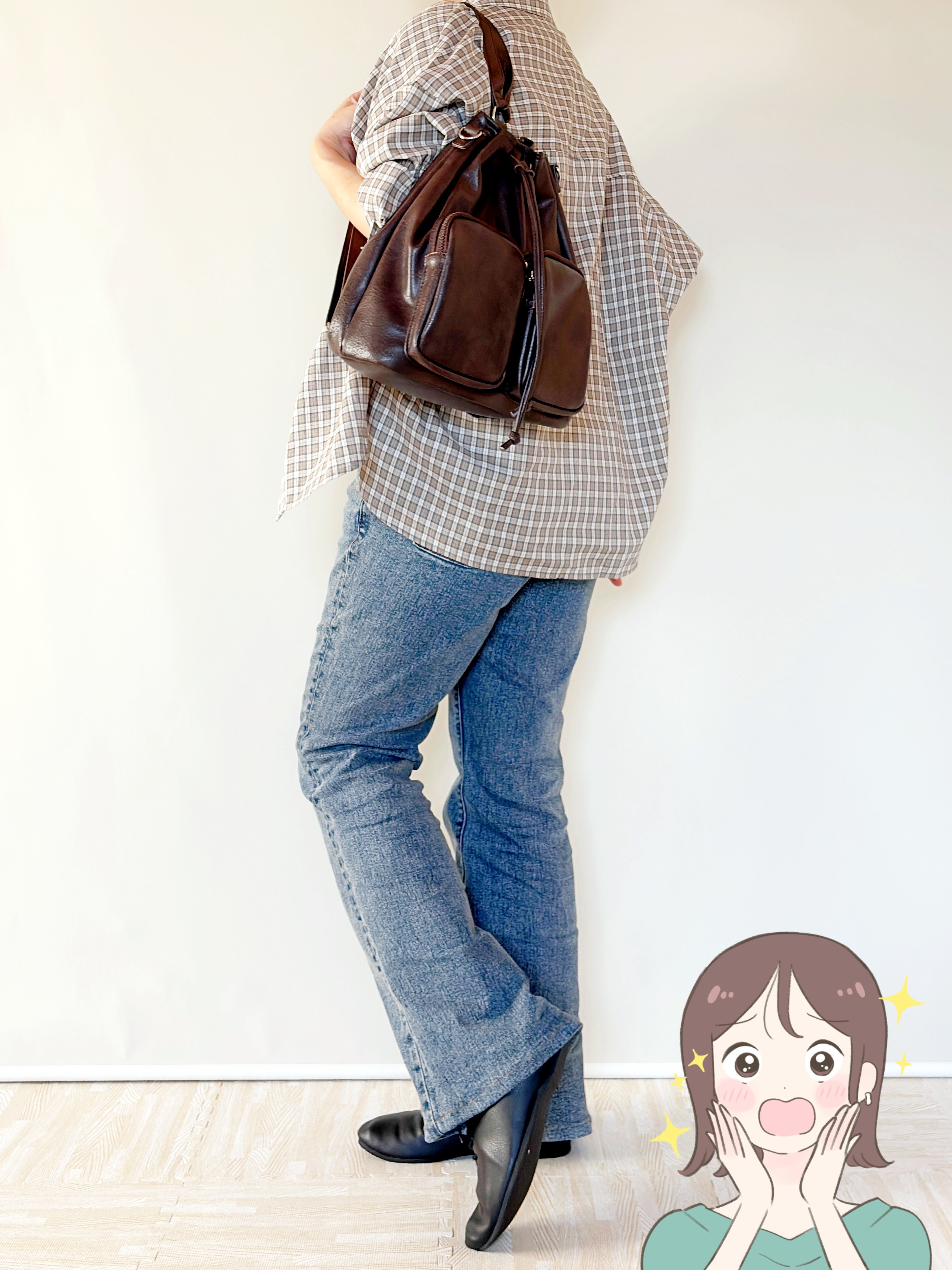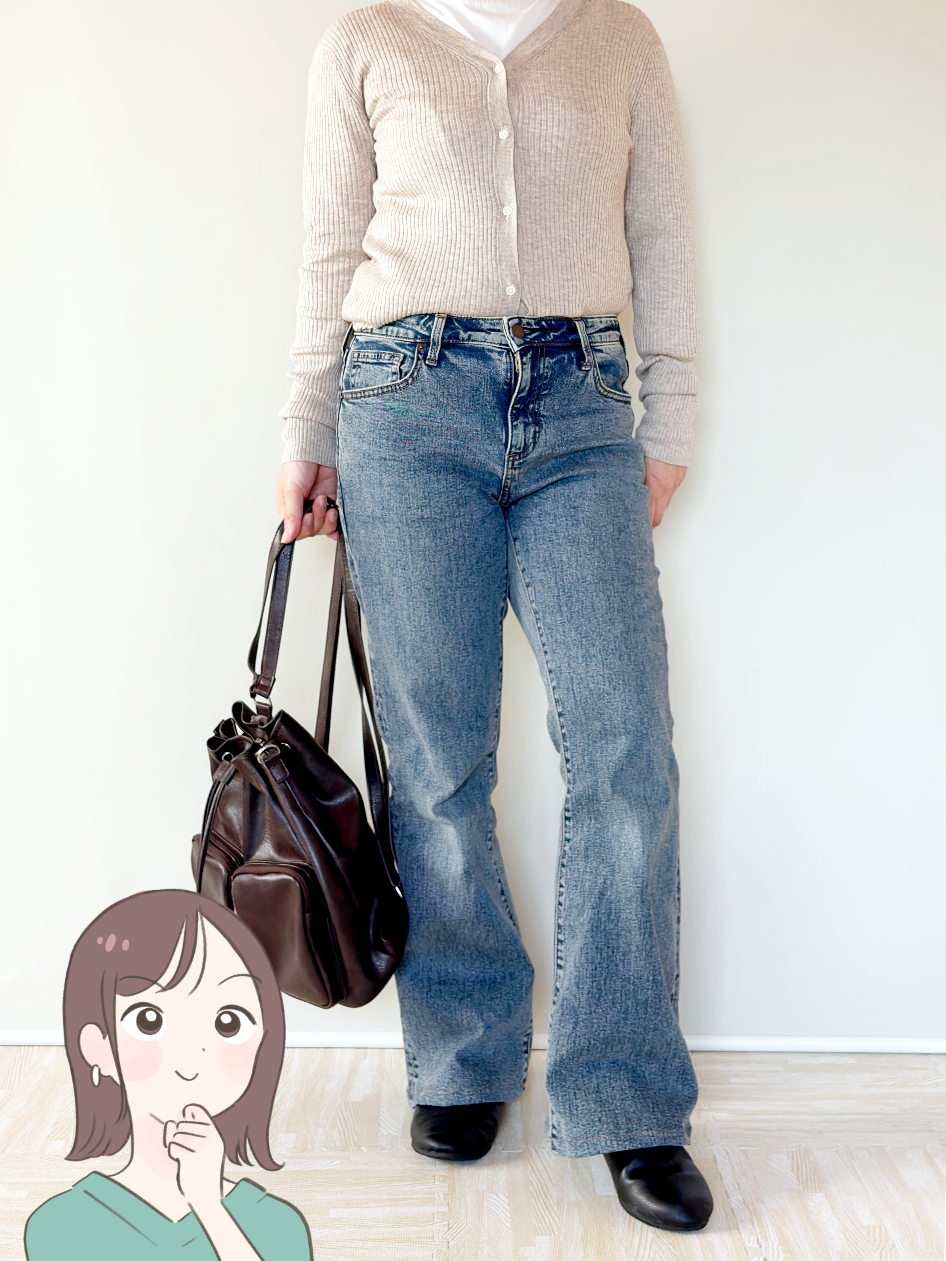 股上が浅すぎないから、トップスをタックインしやすいです。コンパクトなトップスと合わせると、相乗効果でさらにスタイルアップが期待できますよ。