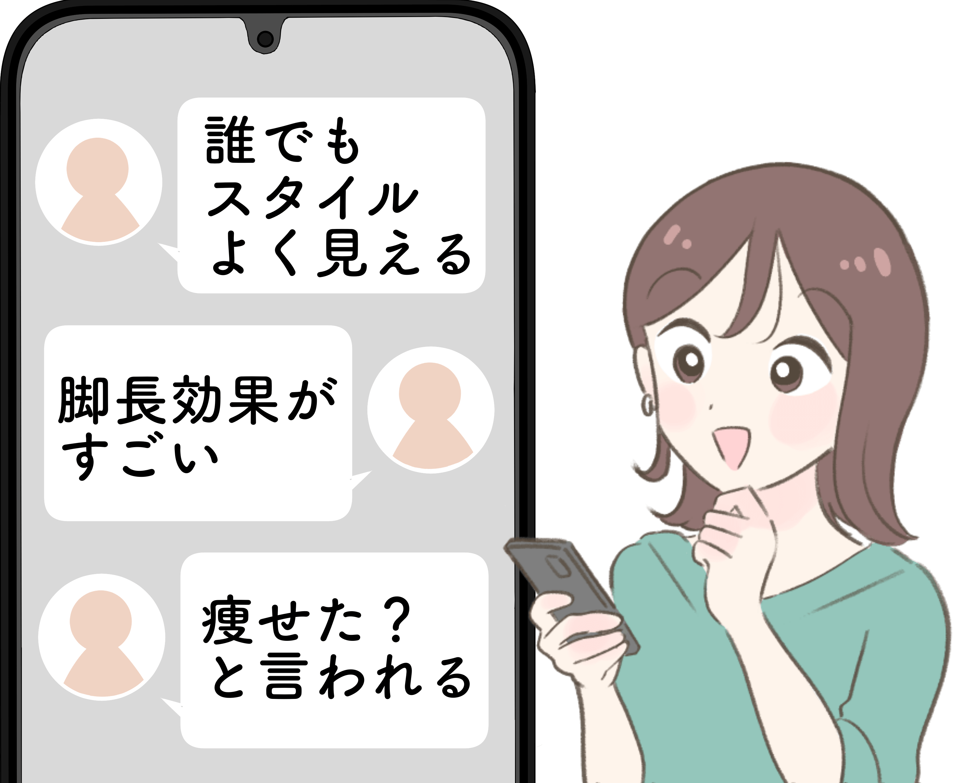 「スタイル爆盛れです」!「足長効果がすごい」「半端ないくらい脚が長く見えます。誰でもスタイルよく見えるのでオススメです」「これ着てる時はほぼ高確率で痩せた?と言われる」「3着持ってます」「評価の★5つではなく★100あげたいくらいにお気に入り」といった声が見られました。
