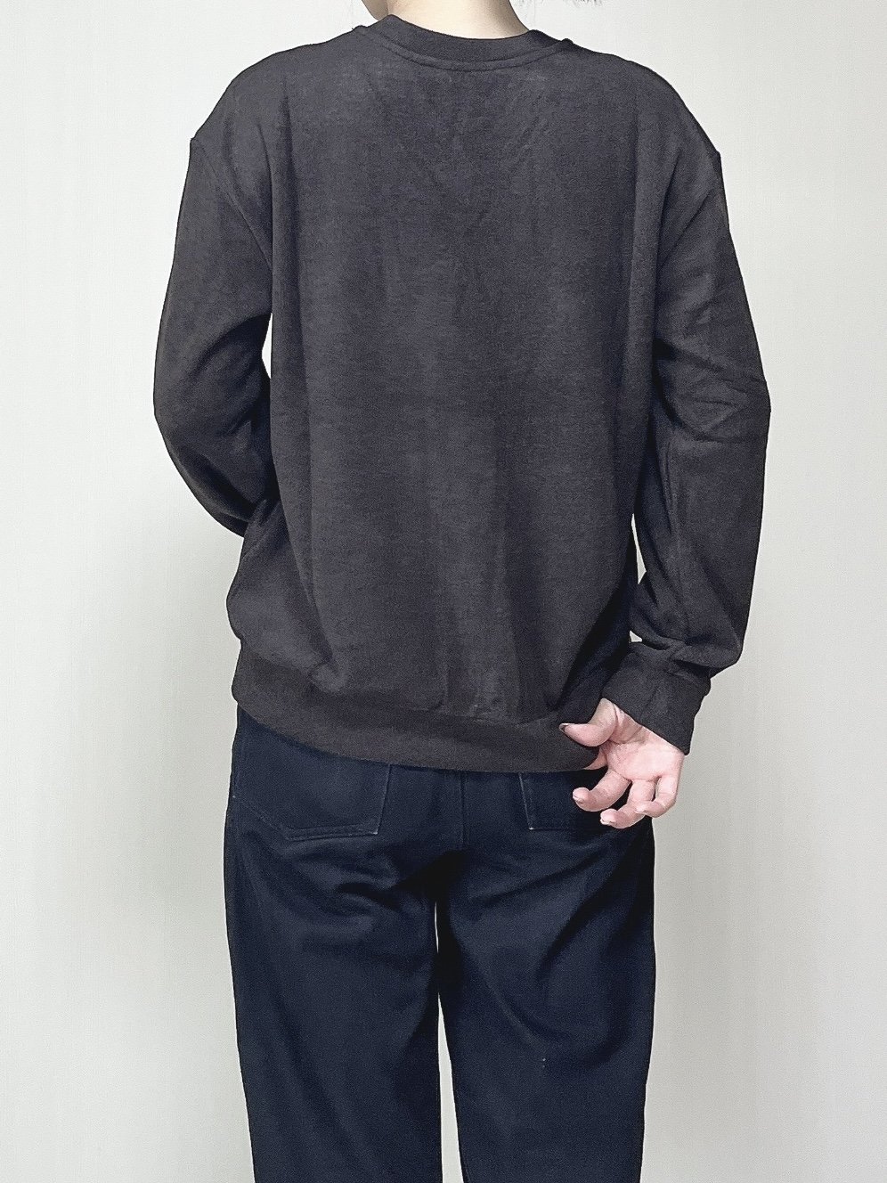 裏面はサラサラして表面とはまた違った気持ちよさがあります。公式サイトによるとジャージー素材が使われているそうです。チクチク感が少なく、素肌の上からでも着られますよ。