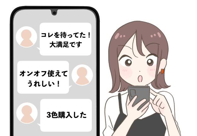 公式レビューでは「コレを待ってた!大満足です」「オンオフ使えるのがうれしい!」「全色揃えたいかわいさです」「3色購入しました」などのコメントが寄せられていました。