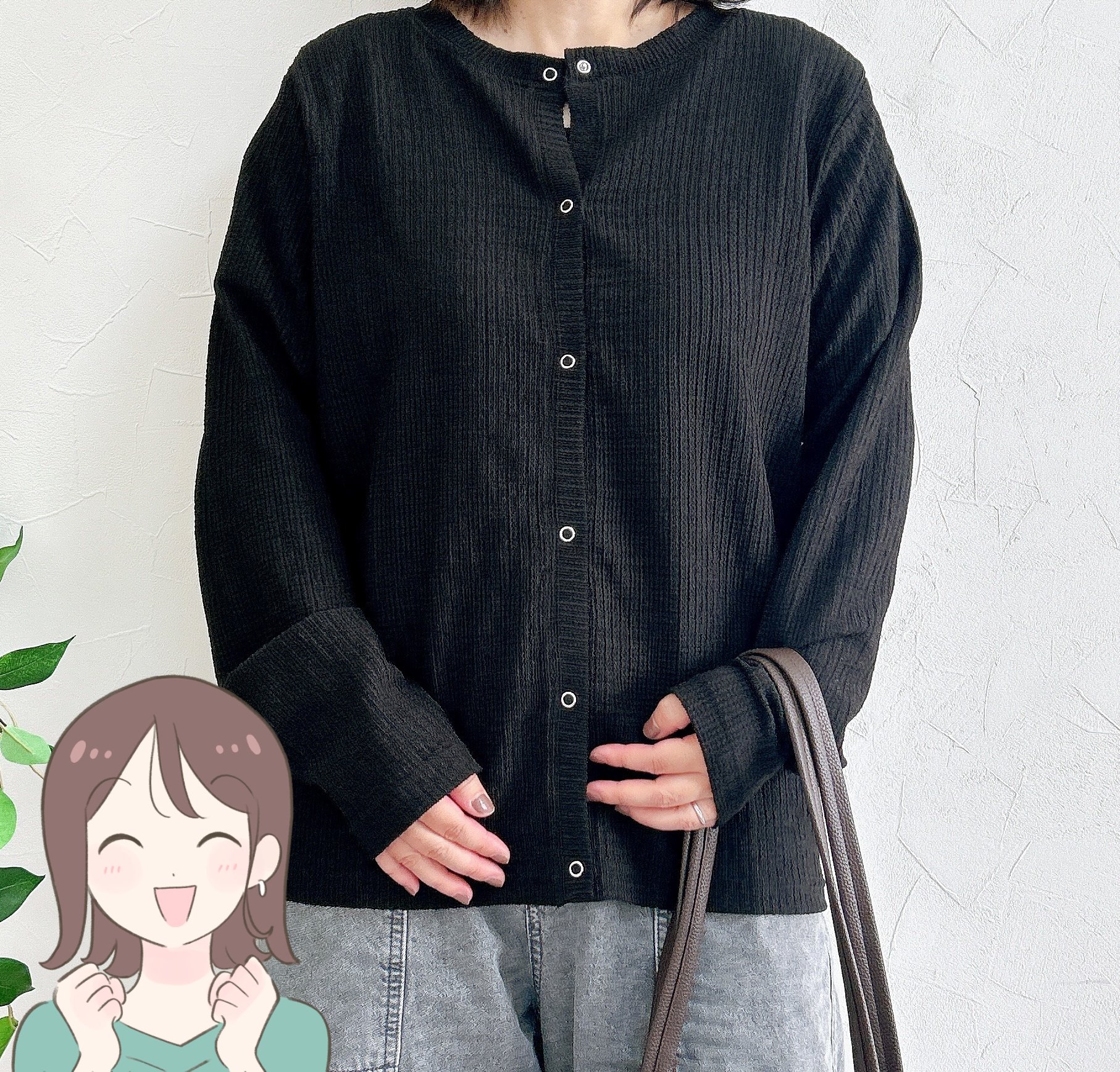 まだ暑い時間はTシャツに、肌寒くなってきたら長袖のカーディガンを羽織って……といった秋の季節に嬉しい2枚セットのアイテムです。価格は1780円でした。