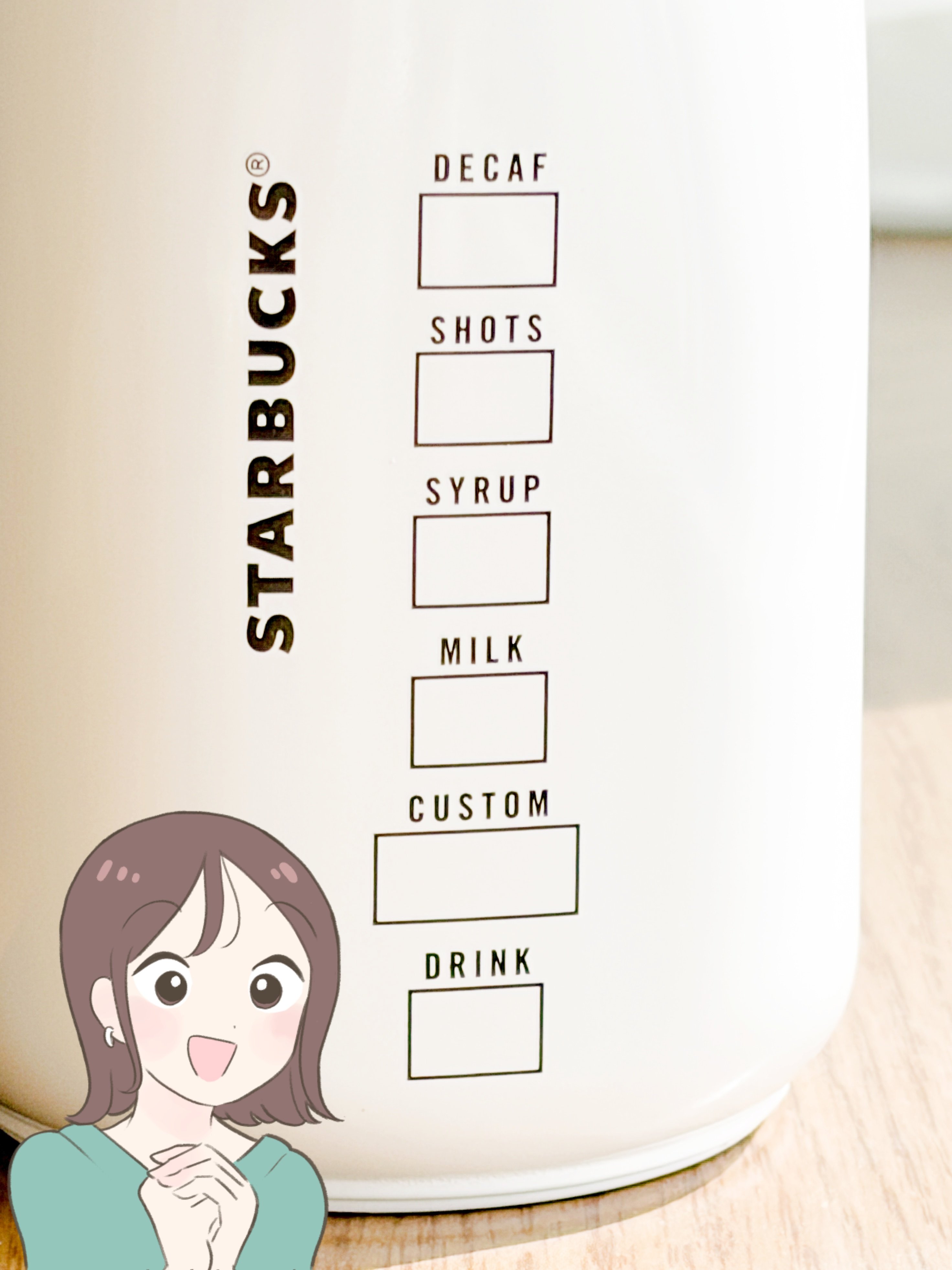 裏には、スタバのカップに描かれている「DECAF」「SHOTS」などのカスタマイズボックスがデザインされていました。