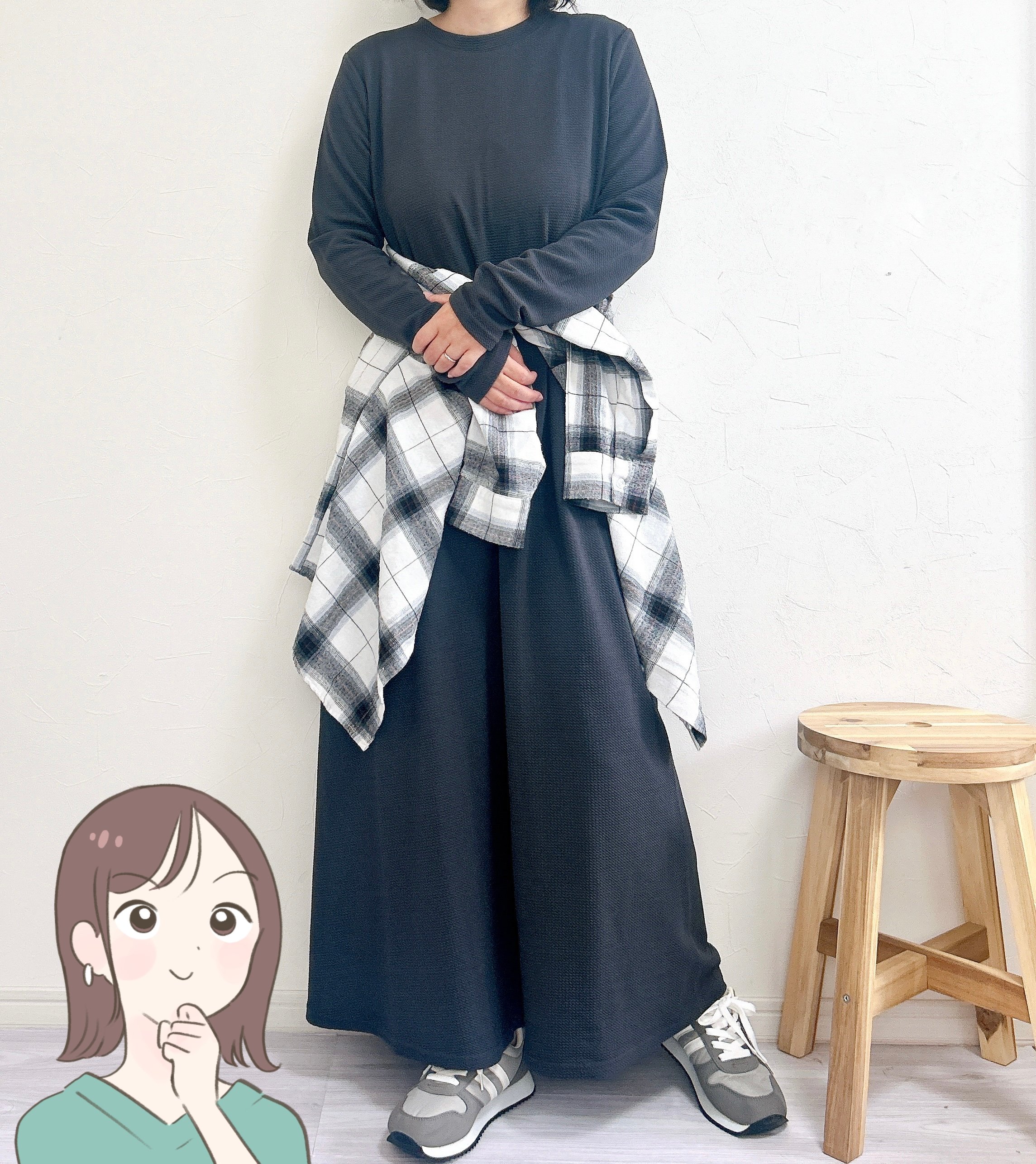 生地に透け感もなくこれ1枚でコーデが決まるから、朝の支度が時短になって便利です!