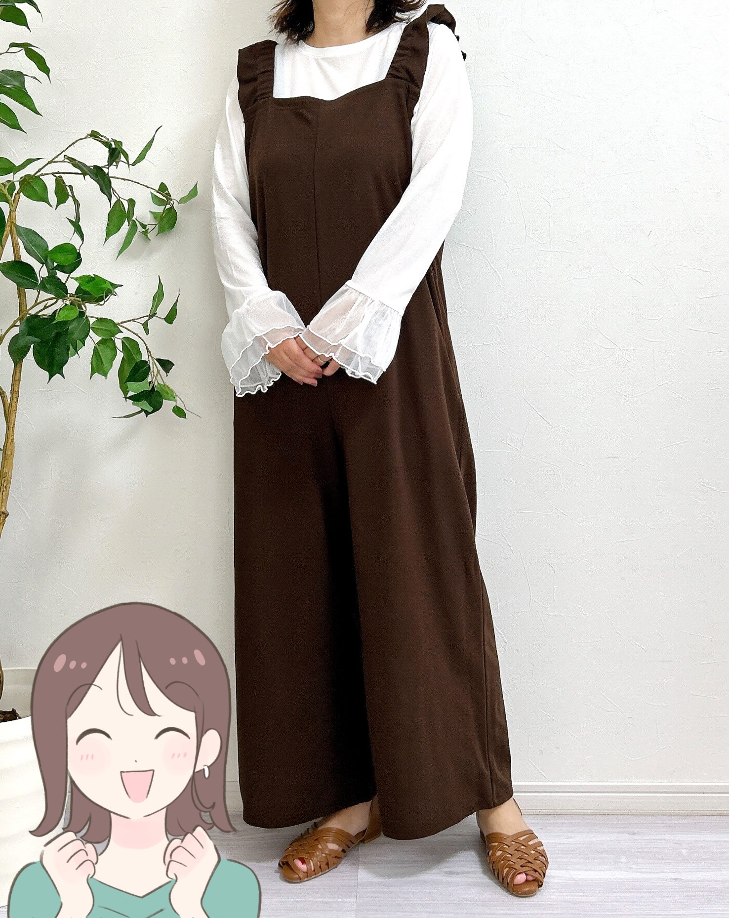 1枚でかわいいアイテムといえば、ハニーズの「肩フリルオールインワン」もおすすめ