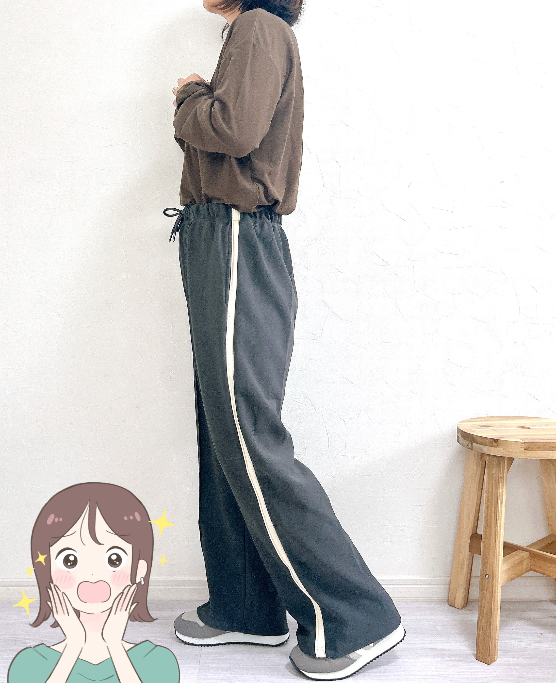 サイドには太めの白いラインが入っていて、横から見た時のデザインがカッコいいです。脚が細く見え、スタイルアップできるのも嬉しい!