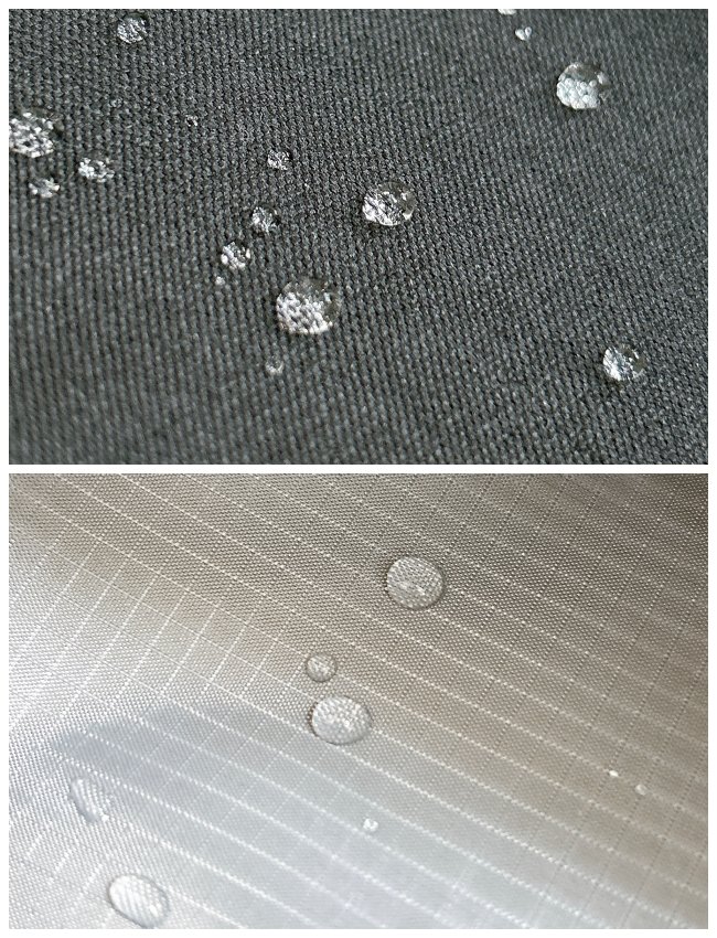 バッグの生地は、外側・内側ともに撥水加工されています。突然の雨でも水が中に染み込みにくいのが嬉しい!軽く水をかけてみたところ、しっかりとコロコロ弾いてくれました。