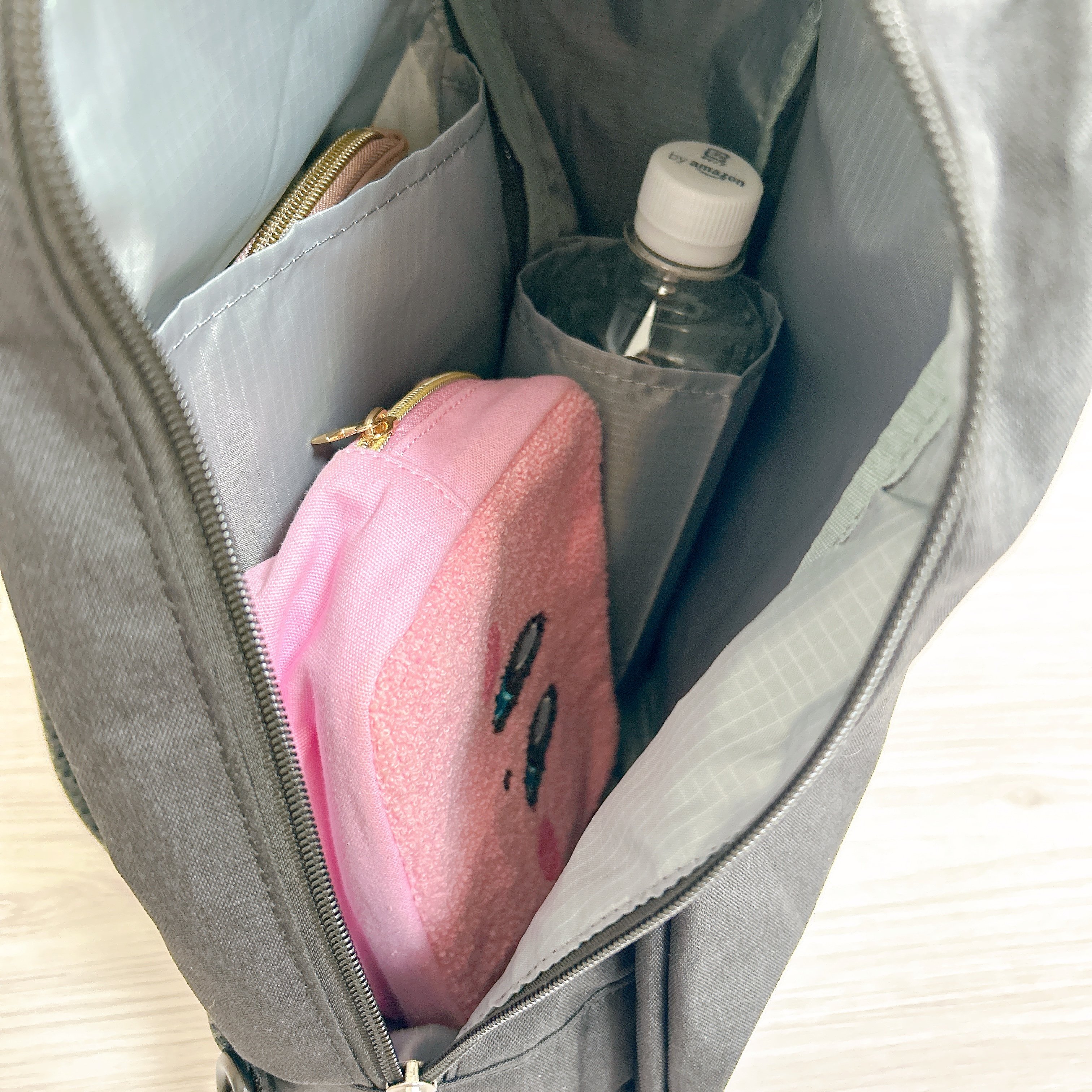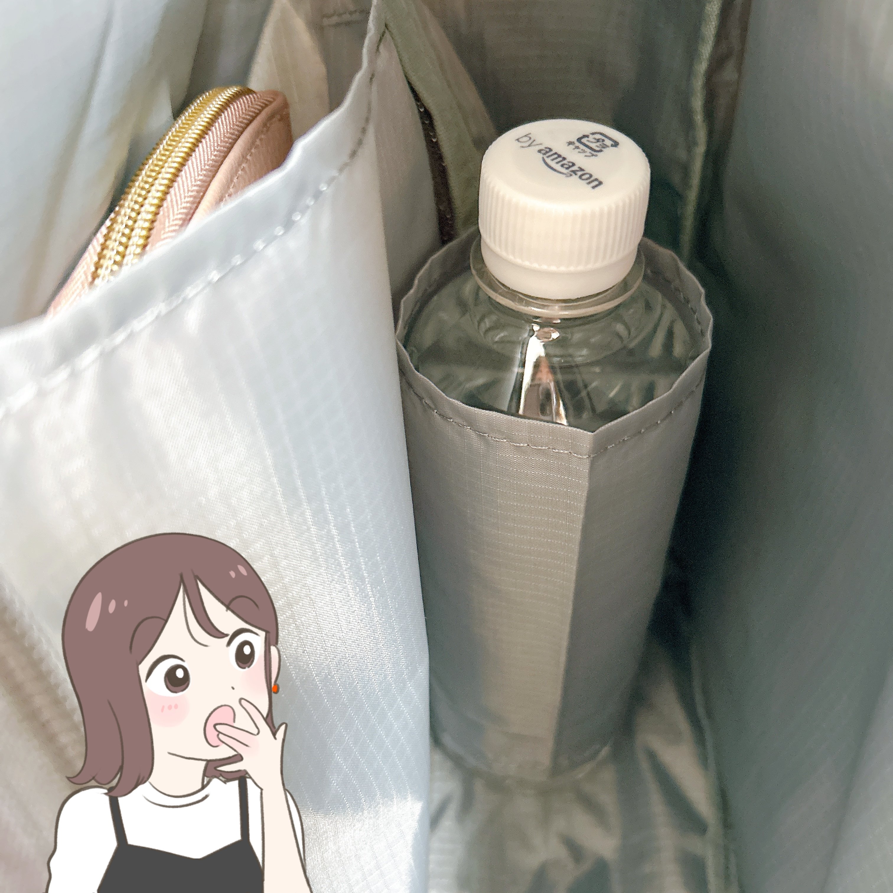 便利だと思ったのが、メインスペース内にある「ボトルストッカー」。輪っかのようなポケットにペットボトルや水筒を通すことで、倒れないように固定してくれるんです!