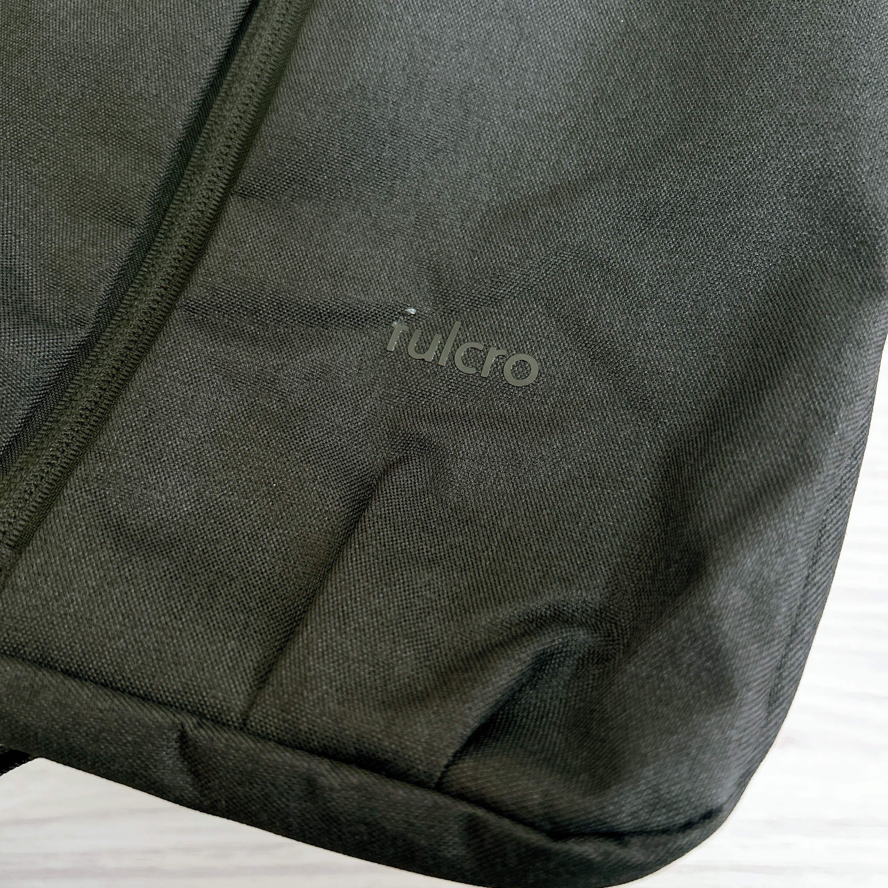カラーはブラック、チャコールグレー、レッド、グレージュの4色展開で、今回はブラックを選びました。フロントには「fulcro」のロゴが入っています。