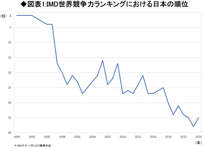 これは、スイスのビジネススクールIMDによる「世界競争力ランキング」における日本の地位の変化と比べ合わせると明らかだ。