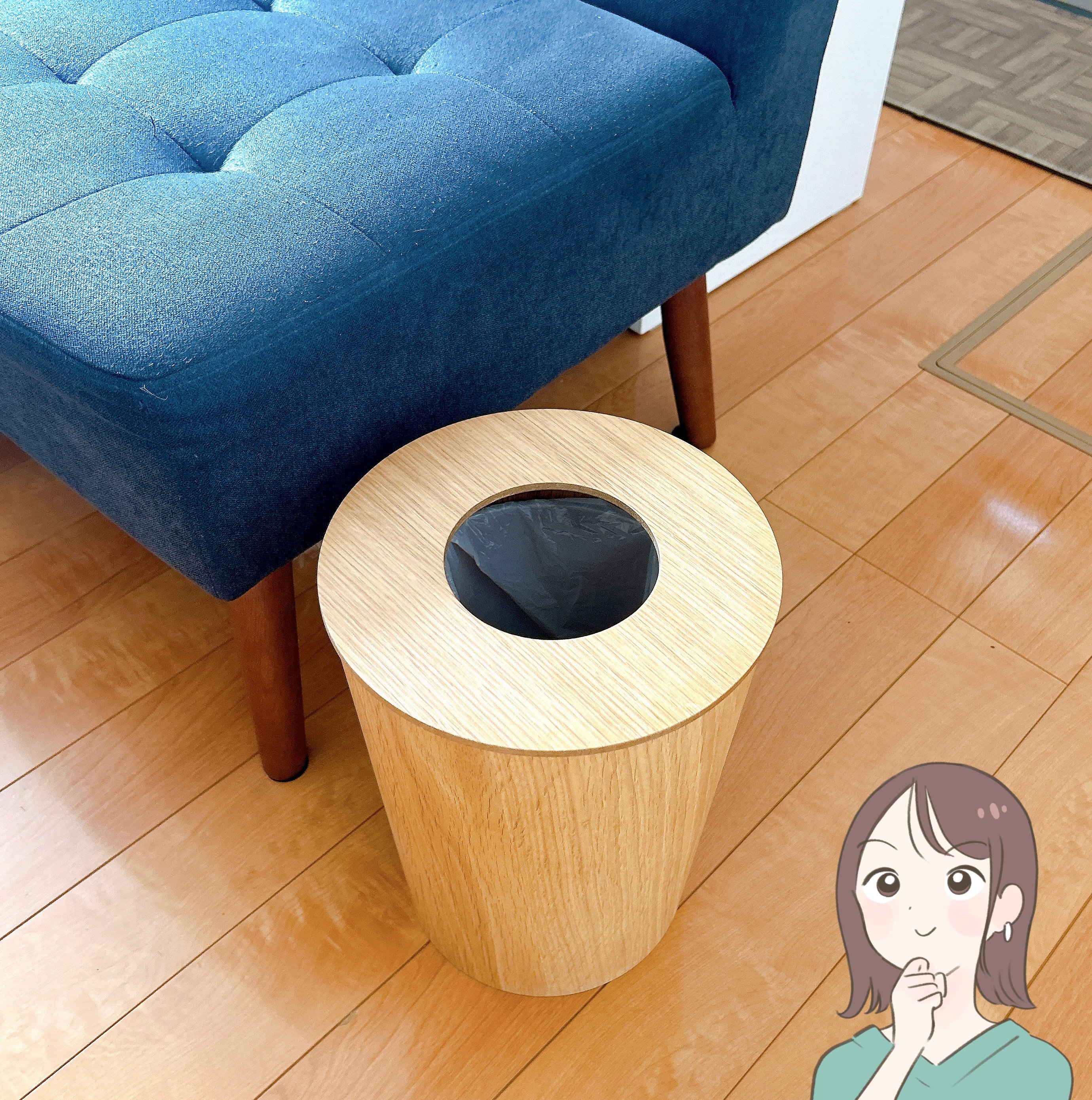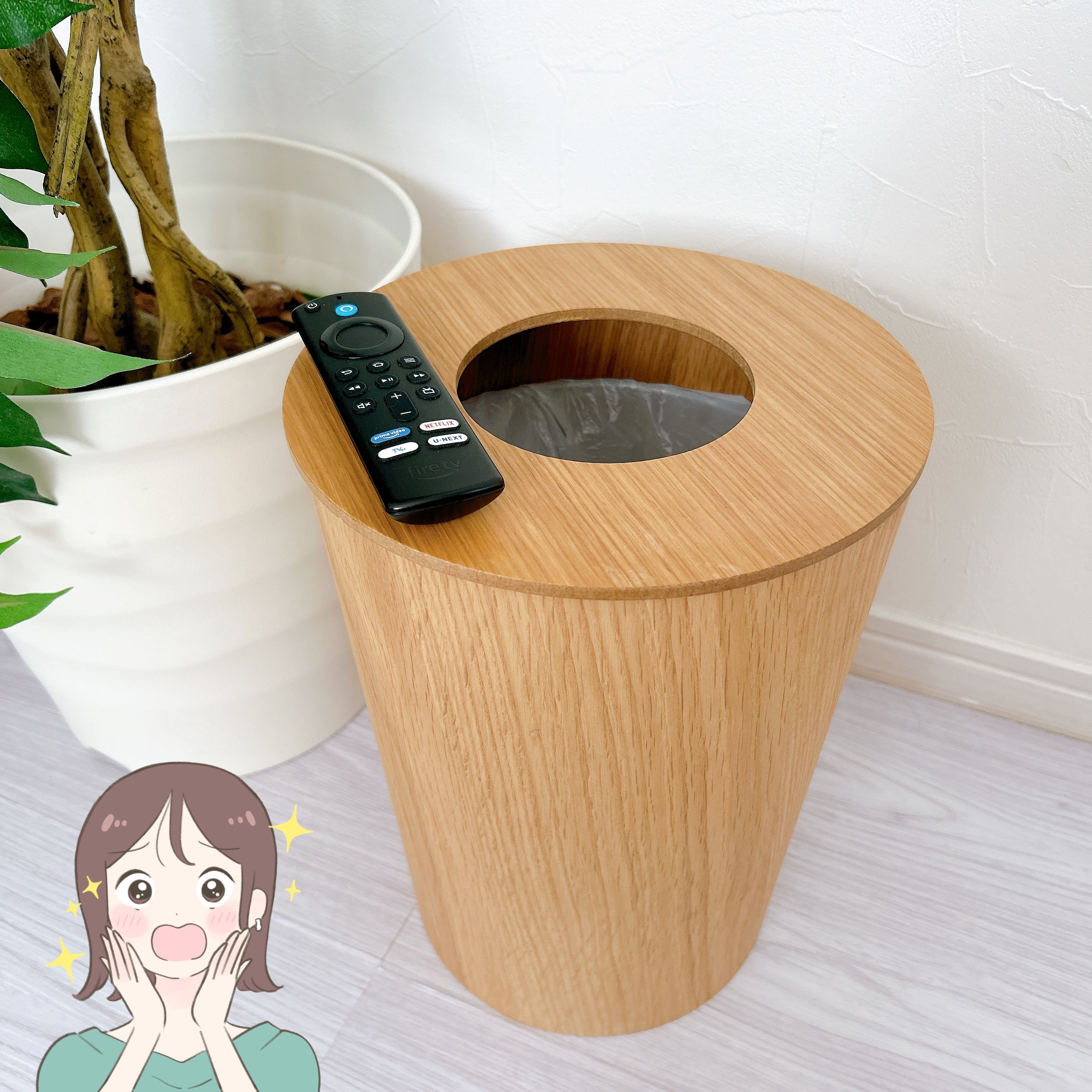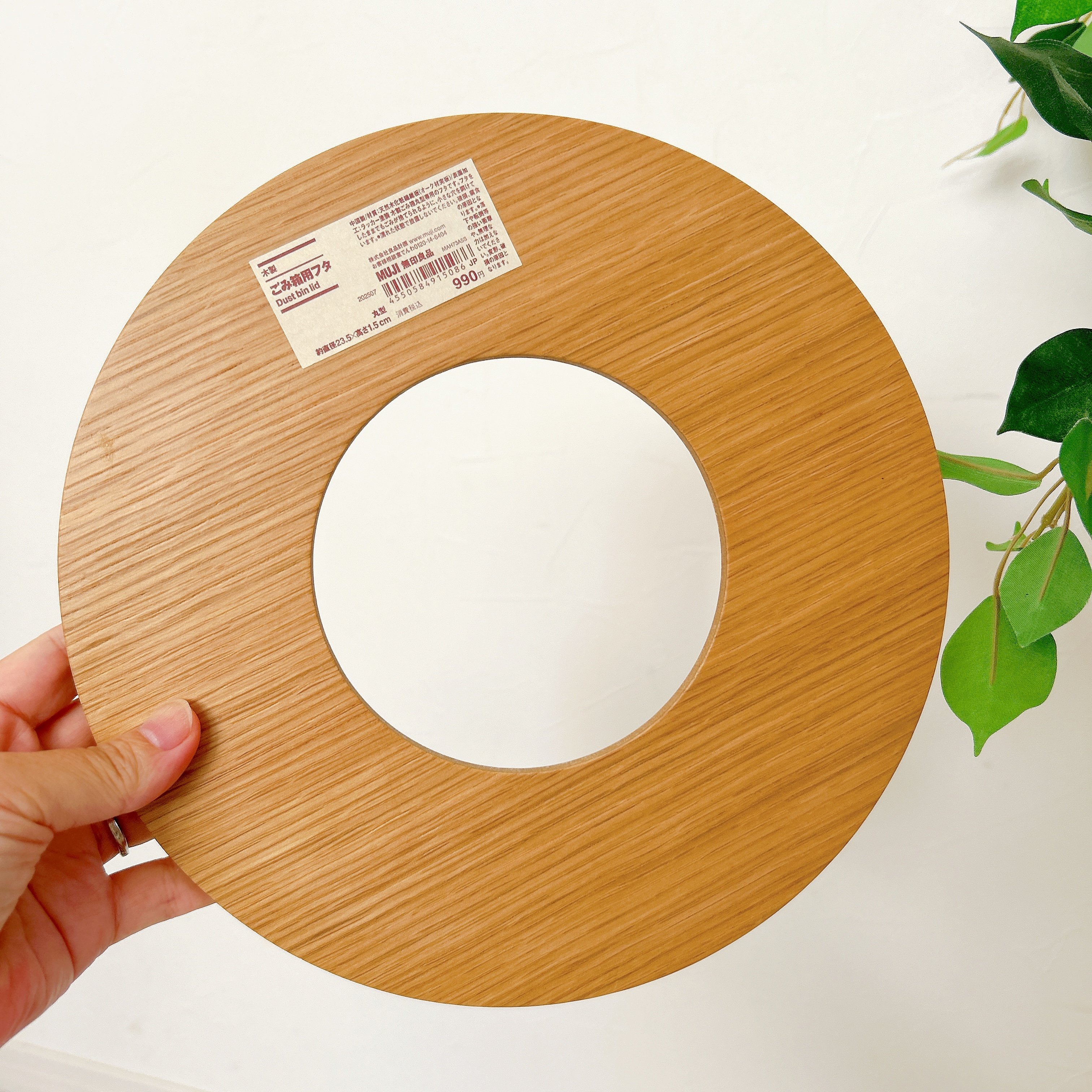 別売りの「木製ごみ箱用フタ・丸型」の価格は990円です。真ん中に穴があいていますが、それでも中身が見えづらく、フタをしたままでもゴミが捨てられて便利!