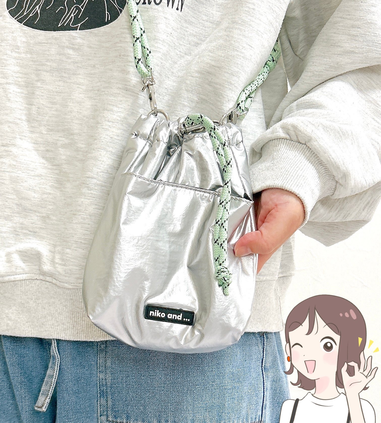 販売中の「オリジナル細コードショルダー巾着バッグN」がかわいくて使いやすいと評判です。