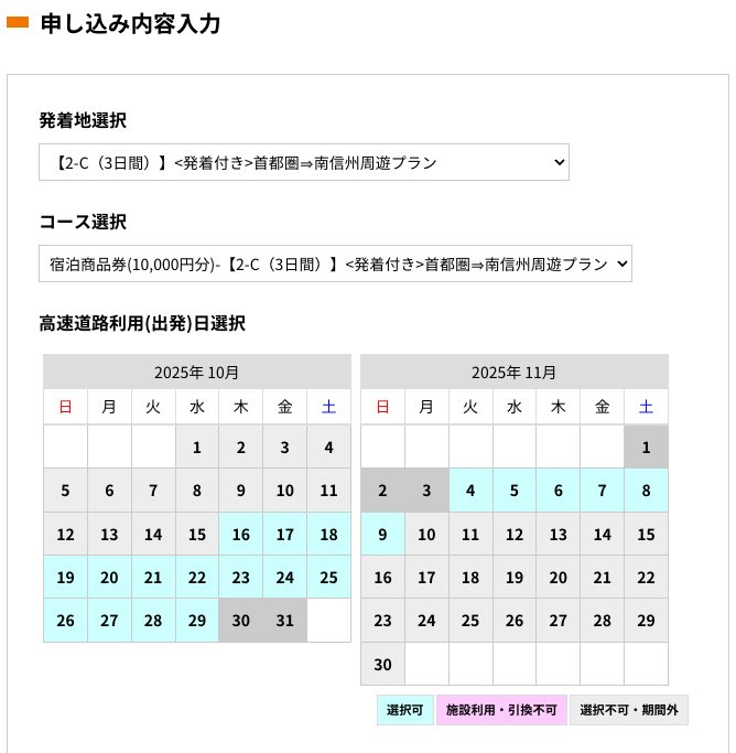 最後に、速旅のウェブサイトで、その宿泊施設の利用に対応するドライブプランを申し込むことで、ネットでの手続きは完了です。