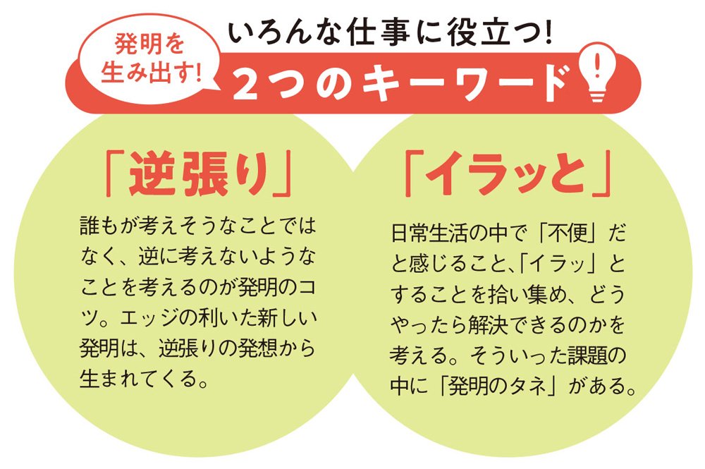 ――身の回りの「イラッ」とすることを探し、「逆張り」の発想で解決策を考える。この2点を押さえれば、発明って誰にでもできそうですね。