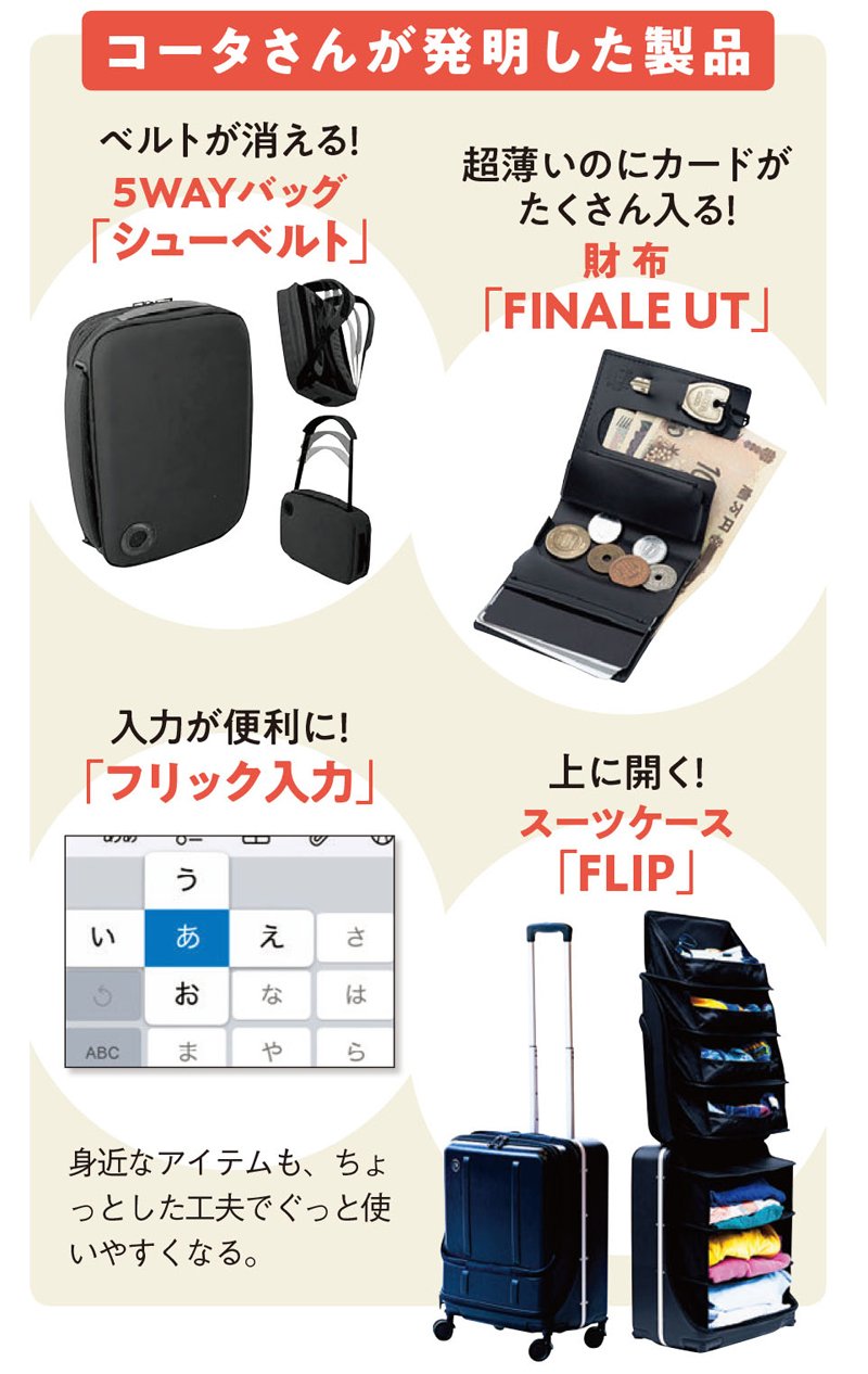 ――「こうなったらいいのに」という願望が“コータ流”の発明の出発点なのですね。