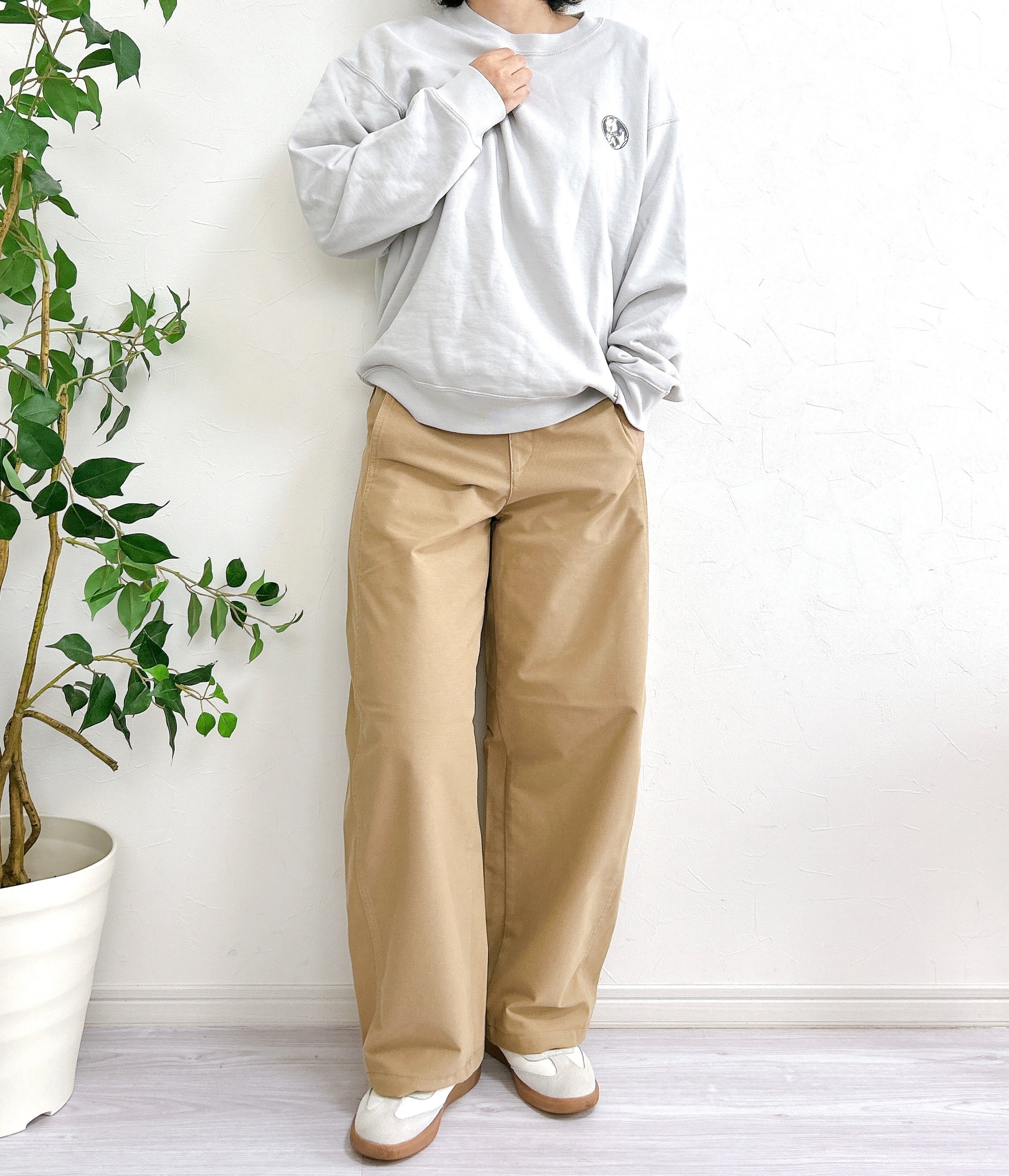 もちろんスウェットなどのゆったりアイテムにもぴったり。きれいなシルエットだから、カジュアルな組み合わせでもトレンド感のあるコーデに仕上がります。