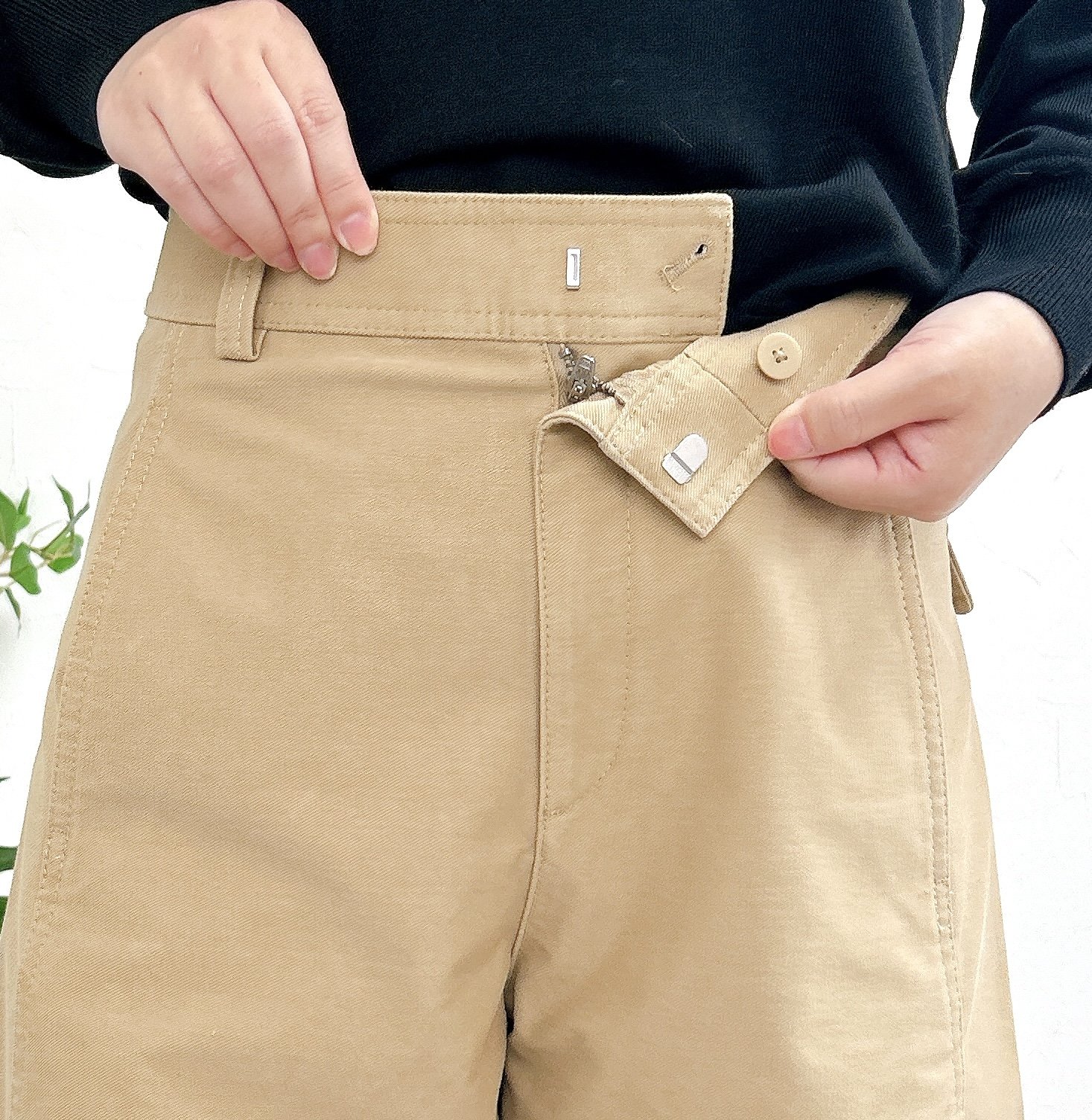 ウエストはホックとボタンタイプで「面倒かな?」と思ったのですが、ボタンホールが斜めに入っているためスッと留めることができました。