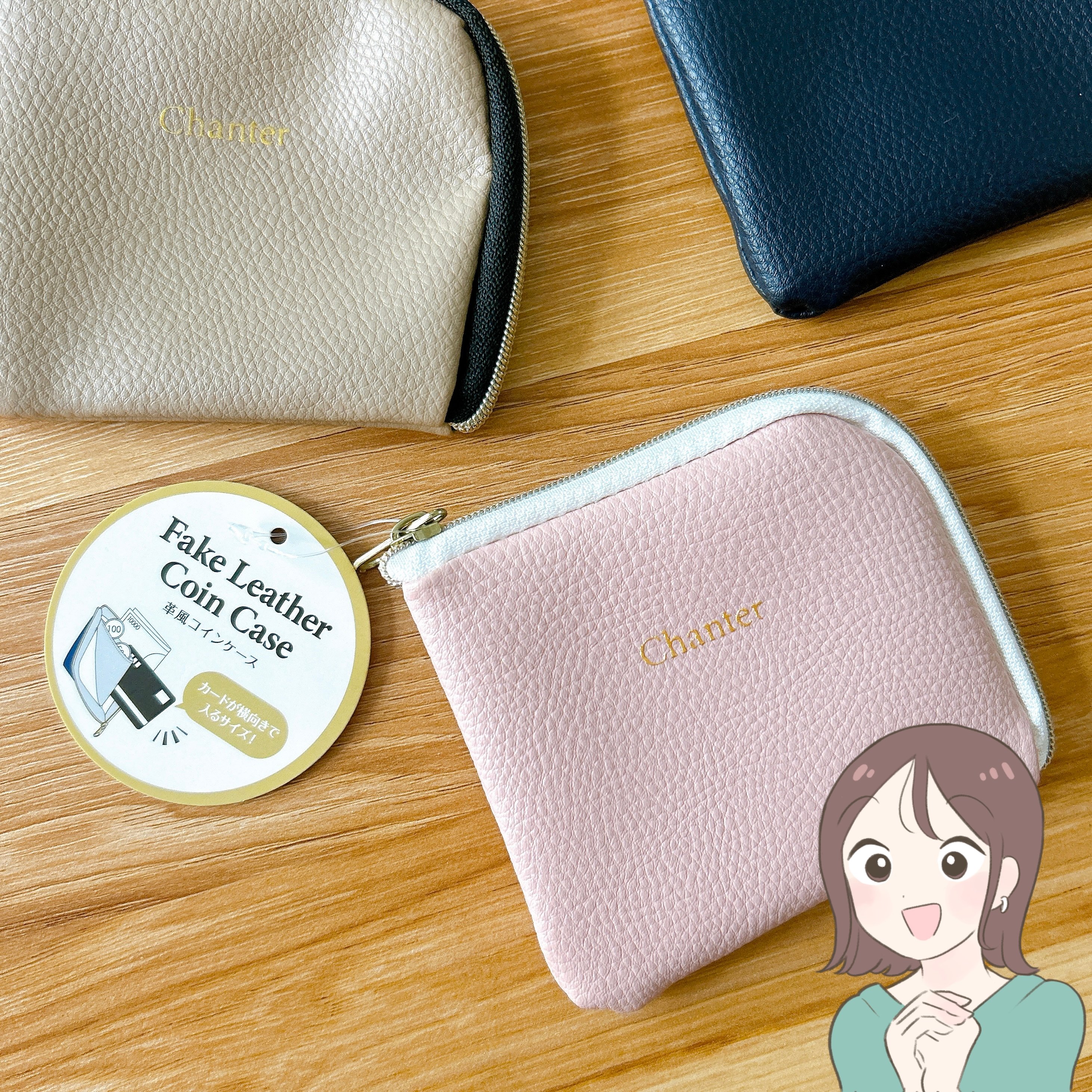 ちょっとしたお出かけやミニバッグ用の財布にぴったりなコインケースです。カラーはピンク、ベージュ、ブラックの3色があり、どれもかわいくて全色まとめ買いしてしまいました!