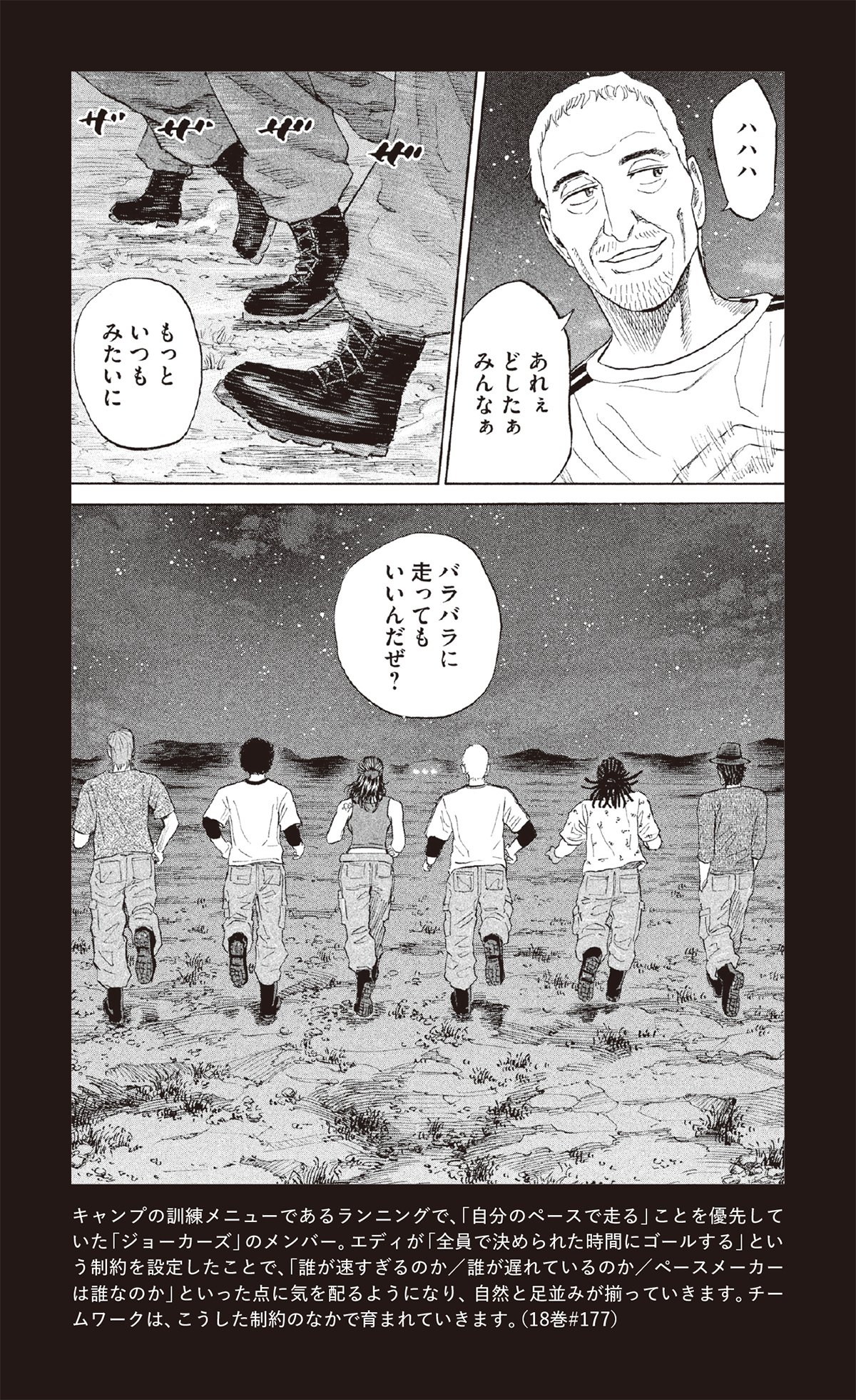 たったこれだけの制約で、メンバーは自主的にエディを中心とした横一列になり、走り出したのです。