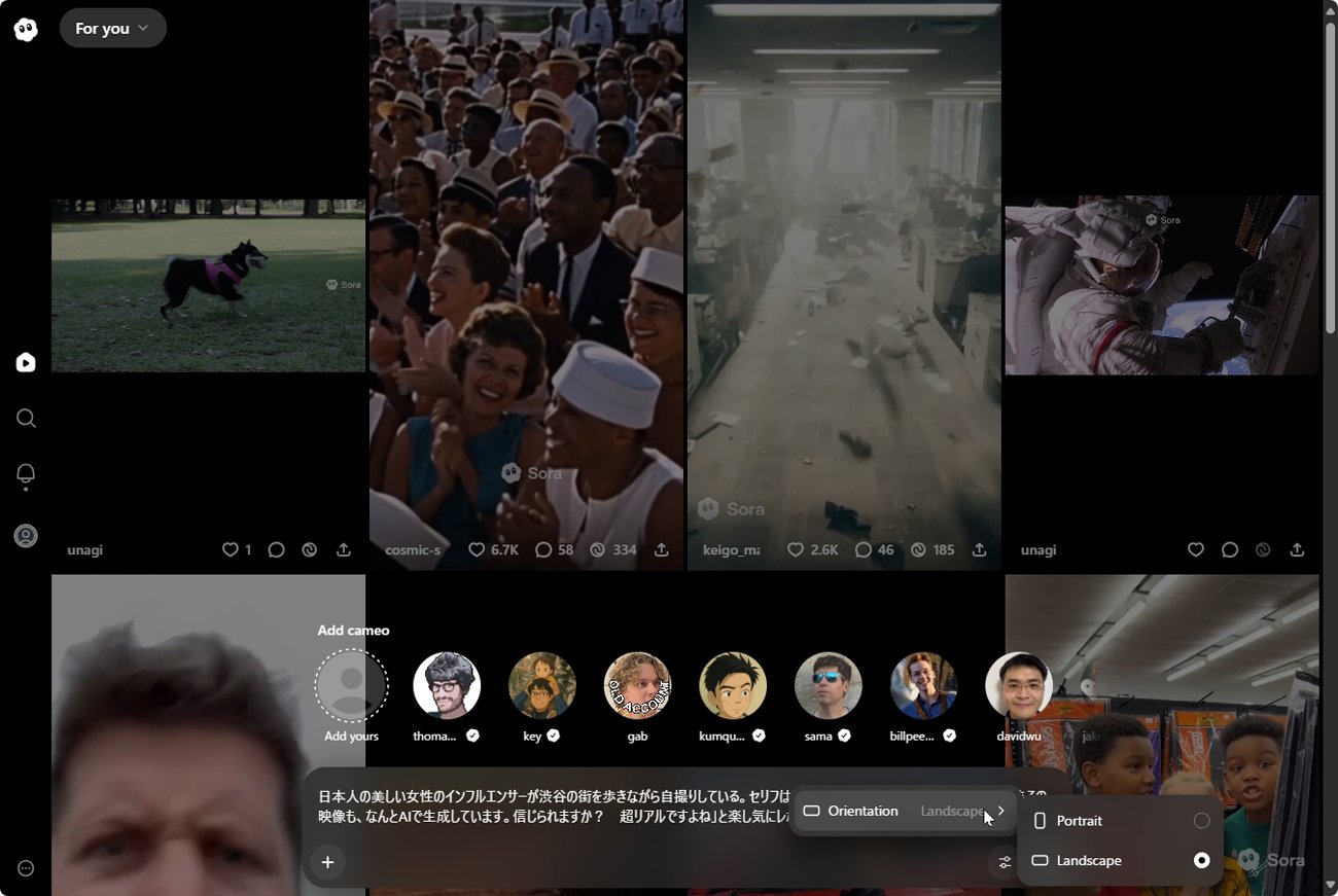 原稿執筆現在は、iOS用アプリとWebブラウザ版でSora2が利用できる。超リアルな音声付きの映像を簡単なプロンプトで生成できるのはとても感動した。Sora 2の基本機能は無料で利用できるので、ぜひ皆さんにも使ってみてほしい。