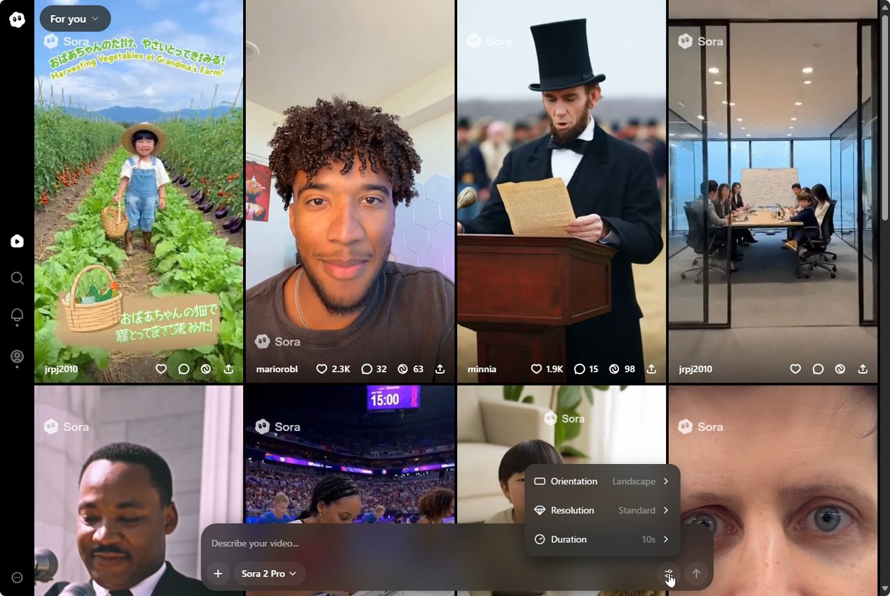 ChatGPTの開発元であるOpenAIの動画生成AI、「Sora」。先日、最新版の「Sora2」がリリースされ、利用者が爆発的な勢いで急増中だ。初代よりも動画生成がぐっと簡単、日本語でも動画を作れる。ショート動画SNS的なUIなので、ただ動画を見るだけでも楽しめ、さらには他の人が作った動画を少し加工(リミックス)して新しい動画を作ることもできる。これまでの動画生成AIとはケタ違いにハードルが低く、操作も簡単なのに、生成された動画のクオリティーはとんでもなく高い。ますますユーザーが増えると思われるSora2の特徴と、基本的な使い方をレクチャーする。実際にSora2を使ってみることで、技術の進化の速さに驚かされるだけでなく、問題点や課題についても理解できるはずだ。(ITライター 柳谷智宣)