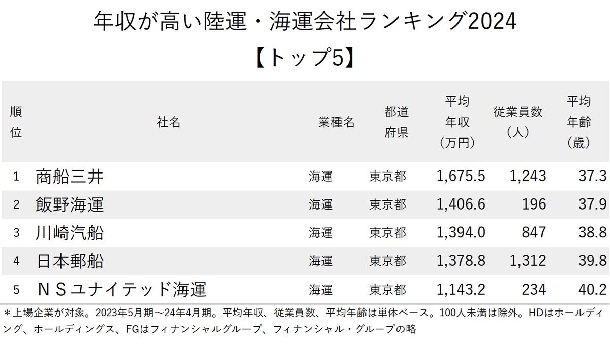 今回のランキングは陸運と海運の2業種に絞っているが、1000万円を超えたのは上位5社で、全て海運会社だった。