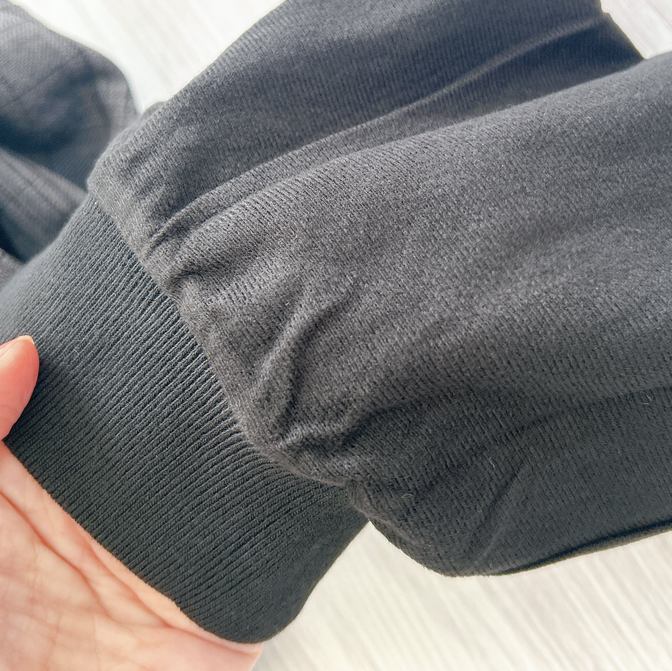 ただ、着替えるときに上のパンツだけ持って脱ごうとすると、レギンスのリブが足首に引っかかったままになってしまいます。先に中のレギンスを足首から脱ぐようにするとスッと着替えられました。