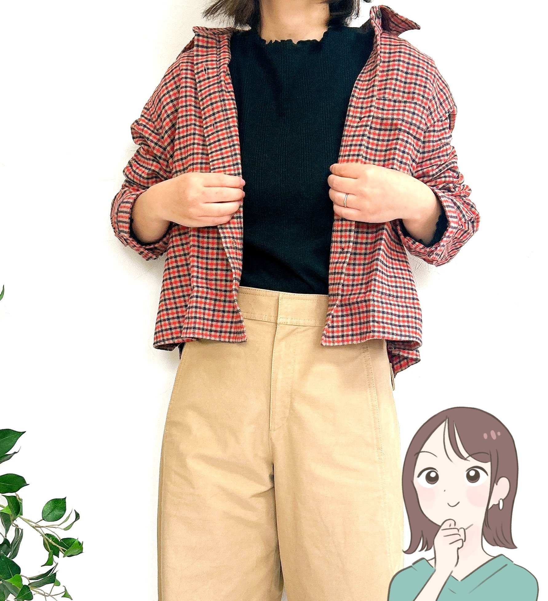 定番のチェック柄シャツですが、トレンドのショート丈を採用することで野暮ったく見せないのが、さすがユニクロ。