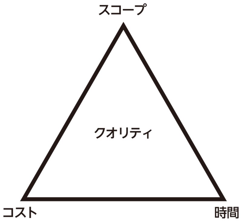 ここでは、プロジェクト・マネジメントの分野でよく知られている考え方が役に立つ。その考え方とは、いかなるプロジェクトでも、クオリティ、コスト、時間、スコープの4要素のバランスを取る必要があるというものだ。それを視覚化したのが次の図である。「プロジェクト・マネジメントの三角形」と呼ばれている。