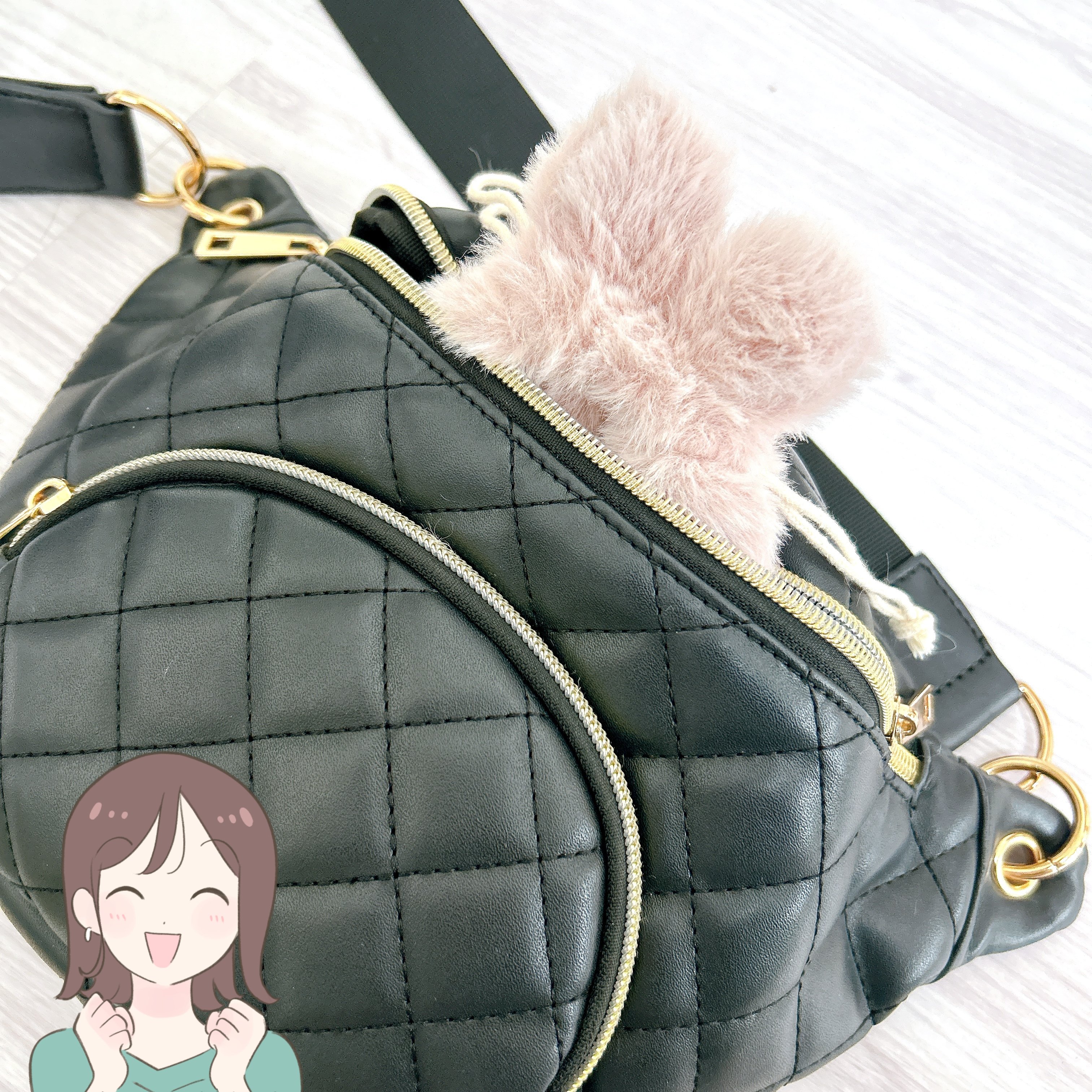 小さいからミニバッグにも入って持ち運びラクラク。バッグの中にウサギがちょこんと入っているみたいで、見るたびにテンションが上がってしまいます。