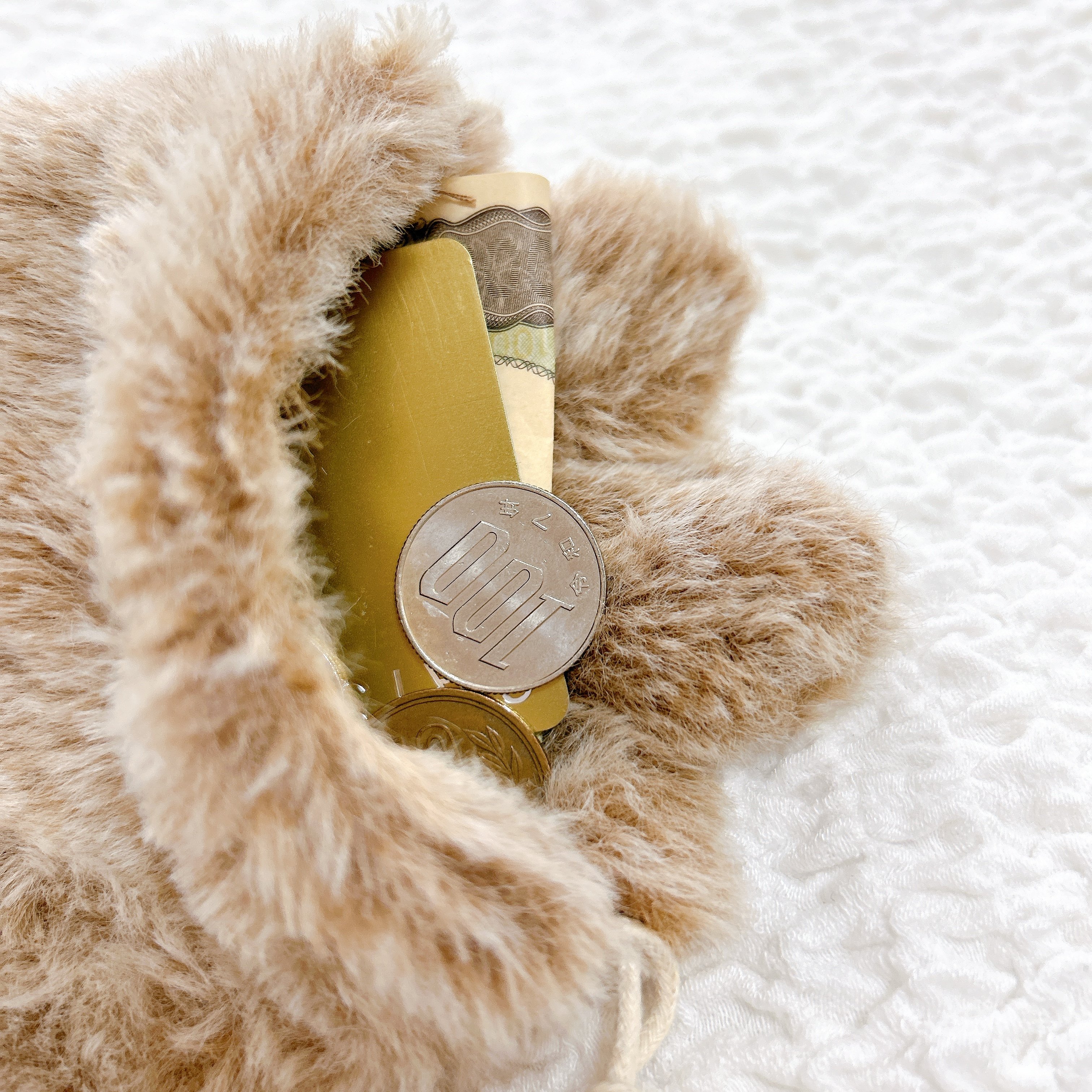 小銭やカード、二つ折りにしたお札が入りました。逆さにしてもあふれることはありませんでしたが、心配な場合は巾着の紐をギュッと結んでおくと安心です。