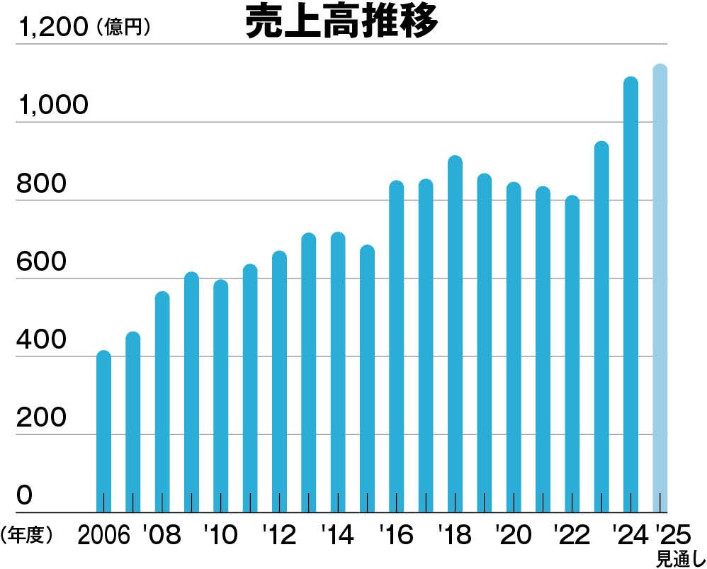 業績も好調で、直近の2025年3月期の売上高が1117億円と過去最高を更新している。
