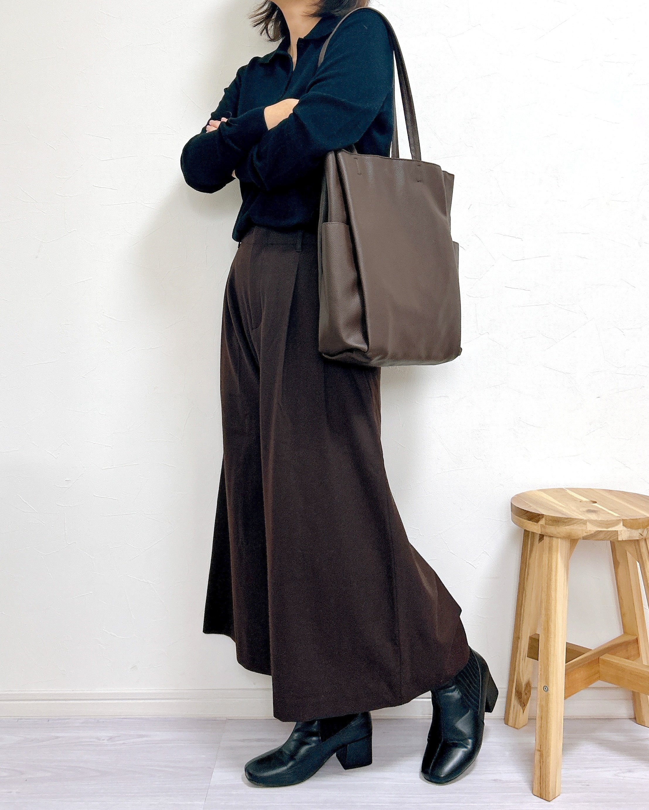 上品なデザインのため、ニットやカーディガンと合わせるだけできれいめにまとめてくれるのが魅力!ショートブーツとの相性が良く、秋冬の足元をオシャレに見せてくれます。
