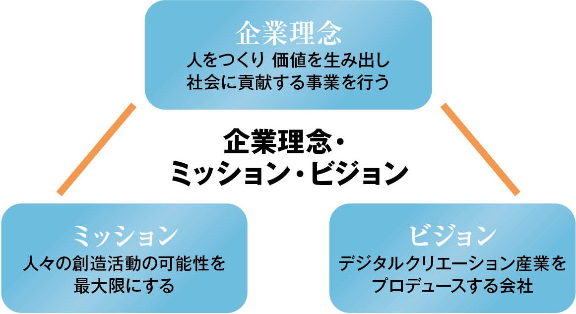 理念は「人をつくり 価値を生み出し 社会に貢献する事業を行う」。ミッションは「人々の創造活動の可能性を最大限にする」。高性能PCを通じて創造力を引き出し、新しい価値を社会に届けようという姿勢だ。