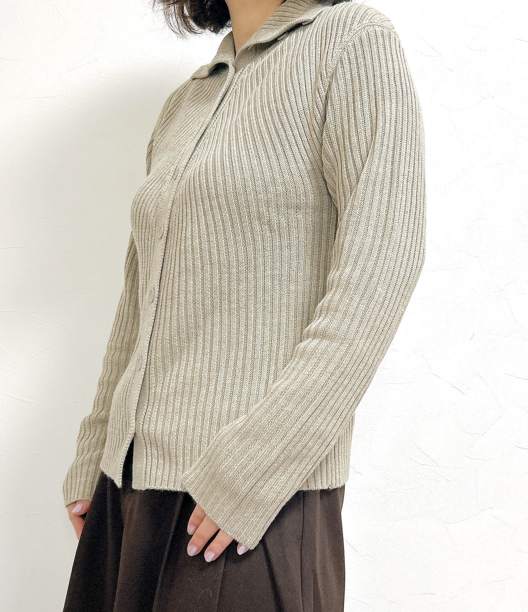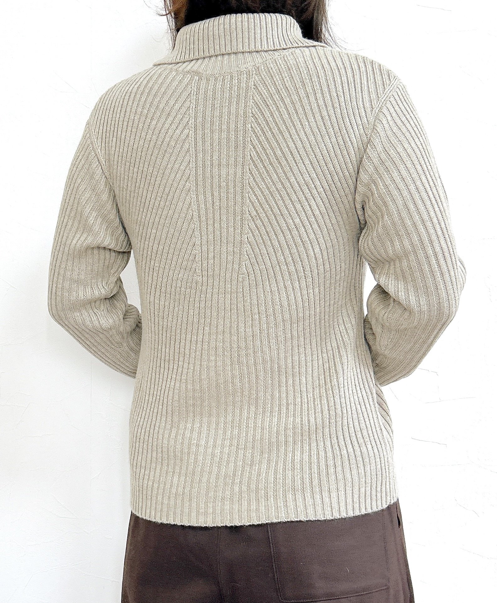 リブ編みが縦に並んだデザインに加え、体にフィットするシルエットのため体が痩せて見えて感動してしまいました。袖はやや長めの丈で、腕も細長く見えて嬉しい!