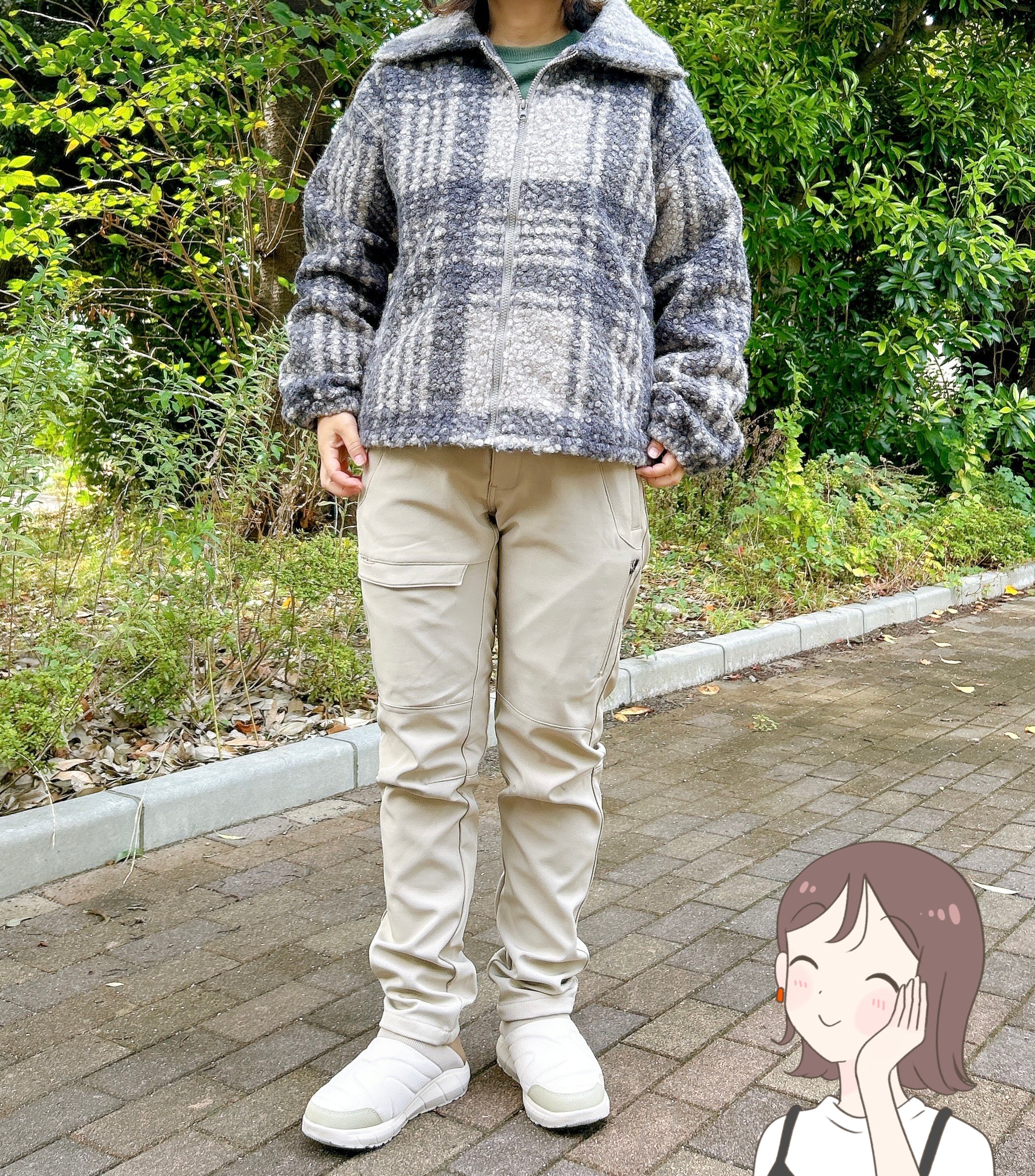 ポケットが多くアウトドア寄りのデザインなので、もこもこアウターなどのかわいらしいアイテムと合わせると、街歩きにも使えてオシャレ見えします。