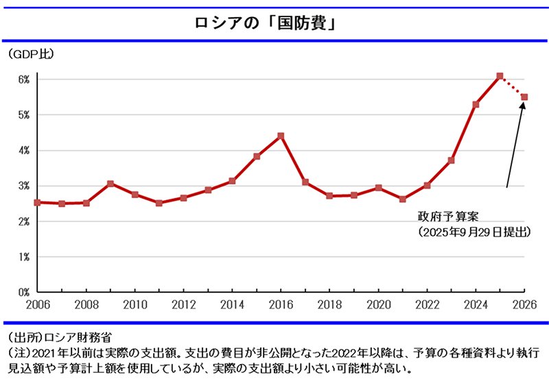 9月29日、ロシア政府は2026年の予算法案を議会に提出した。この予算案では、来年の国防費を今年の予算より減額して計上した。