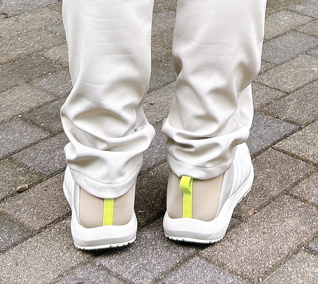ただ、かかと部分にループが付いているのですが、ここの色が蛍光の黄緑色でデザインが浮いているのが少し気になりました。