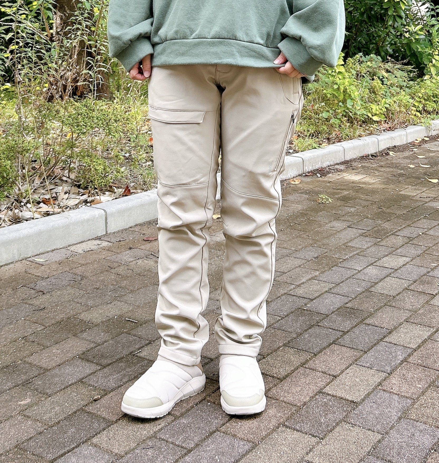 カラーはブラック、ネイビー、パープル、カフェの4色展開で、今回はベージュっぽい色合いのカフェを選びました。キャンプはもちろん、日常使いもできて年齢を問わずに使えるデザインです。