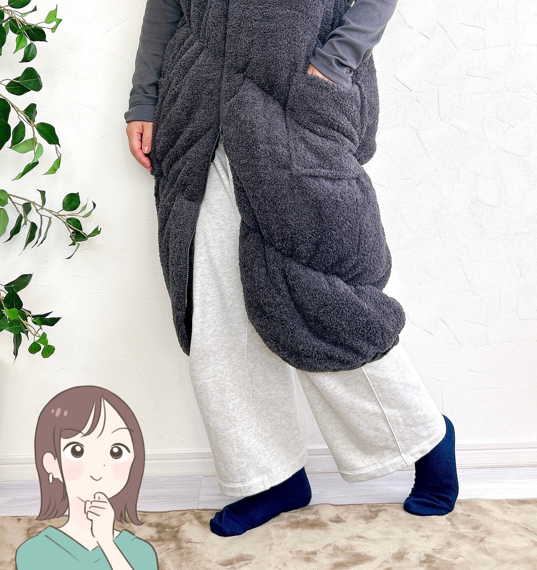 また生地は伸縮性があって、男女で着用できるのも嬉しい。裾はゴムでギュッとすぼまっているから下からの冷気も入りにくくなっています。