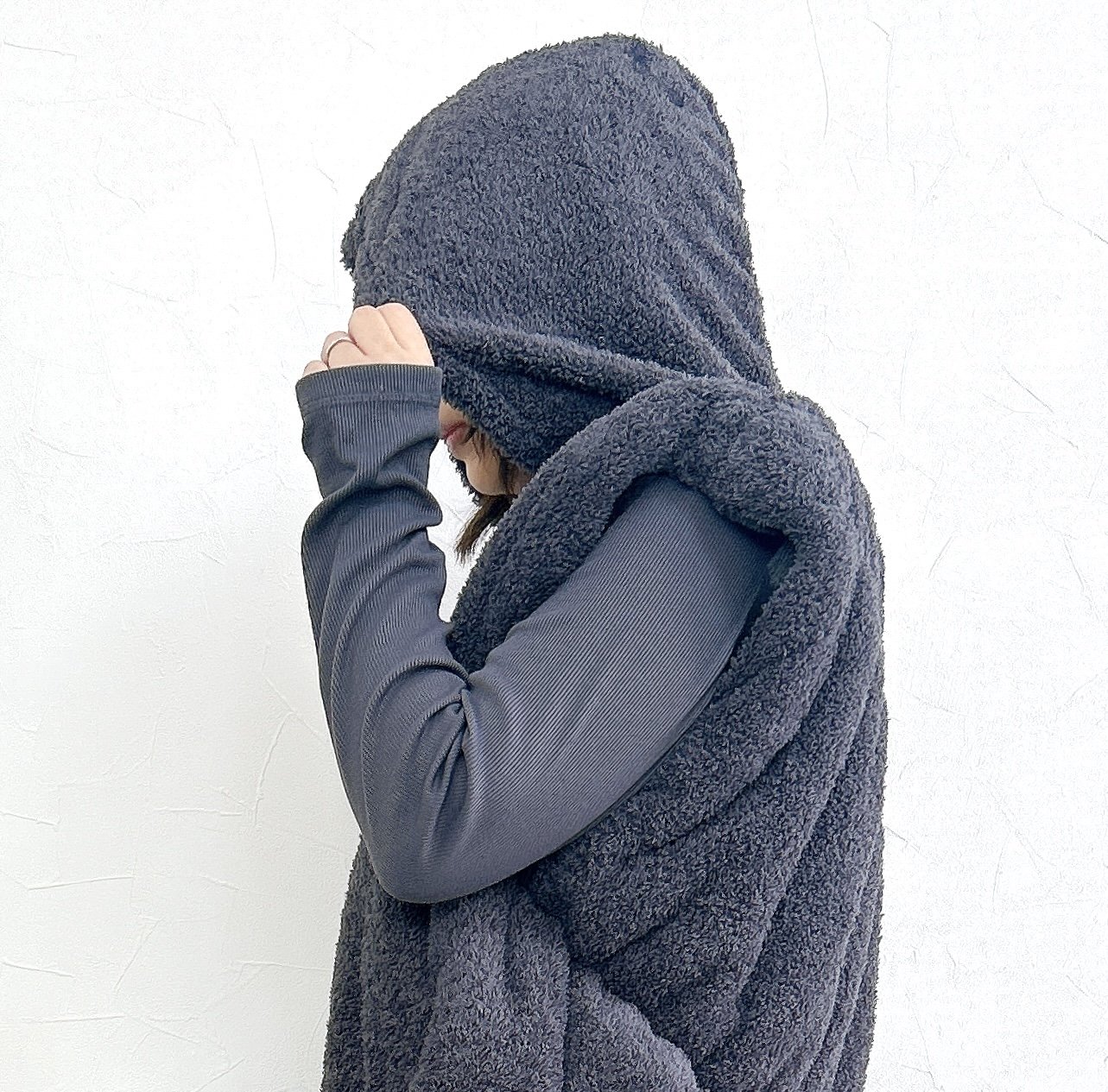 Vネックなので首元に肌寒さを感じるのが気になりましたが、フードを被ると首の後ろが暖かくなります。あまり家でフードは被らないので、ハイネックの方が使いやすいかなとは思いました。