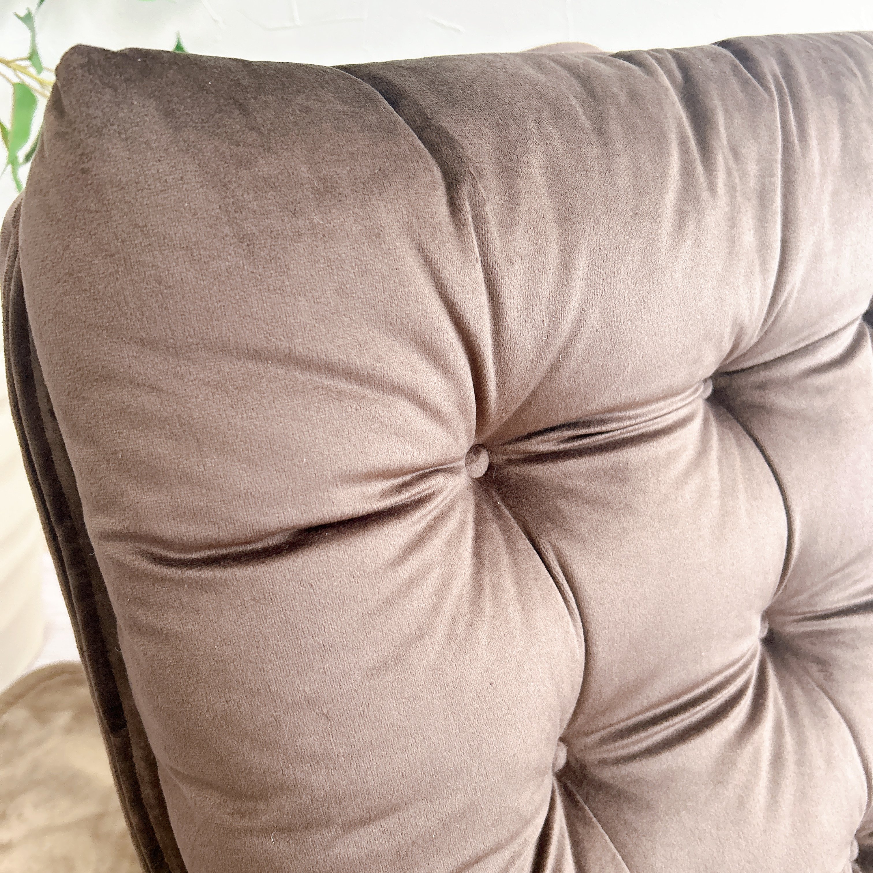 選んだブラウンは、ベロア生地のような光沢感が上品で秋冬にぴったり。グレーは布張りソファのような通年で使える生地になっています。