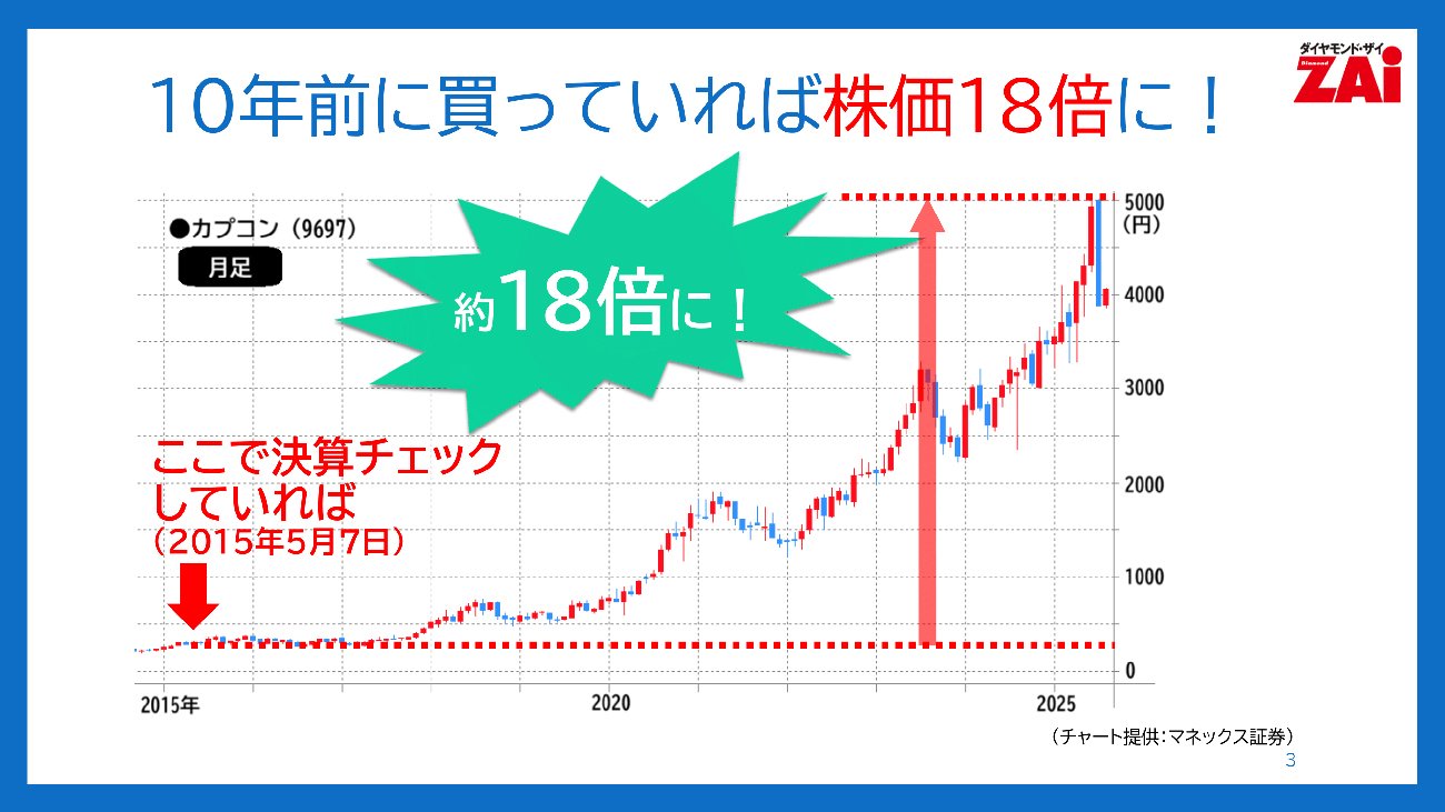 一番売れてる月刊マネー誌『ダイヤモンドZAi』のオンライン講座「決算書1枚で見つかる10倍株・連続増配株!」 。全4回の講座で、ザイのアナリスト2人が決算書を要領よく読むコツを徹底解説。第1回では、決算書の基礎知識と、「過去10倍になった株」の損益計算書を基にその儲け方を学んだ。この記事では、その内容を一部お届けする。(ダイヤモンド・ザイ編集部)